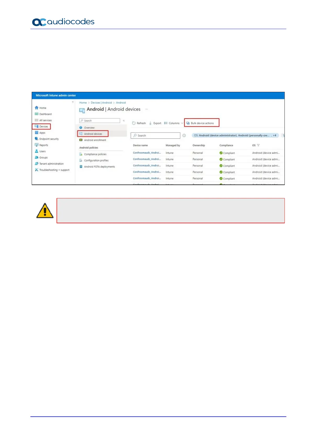 5. Navigate to Devices > Android devices.