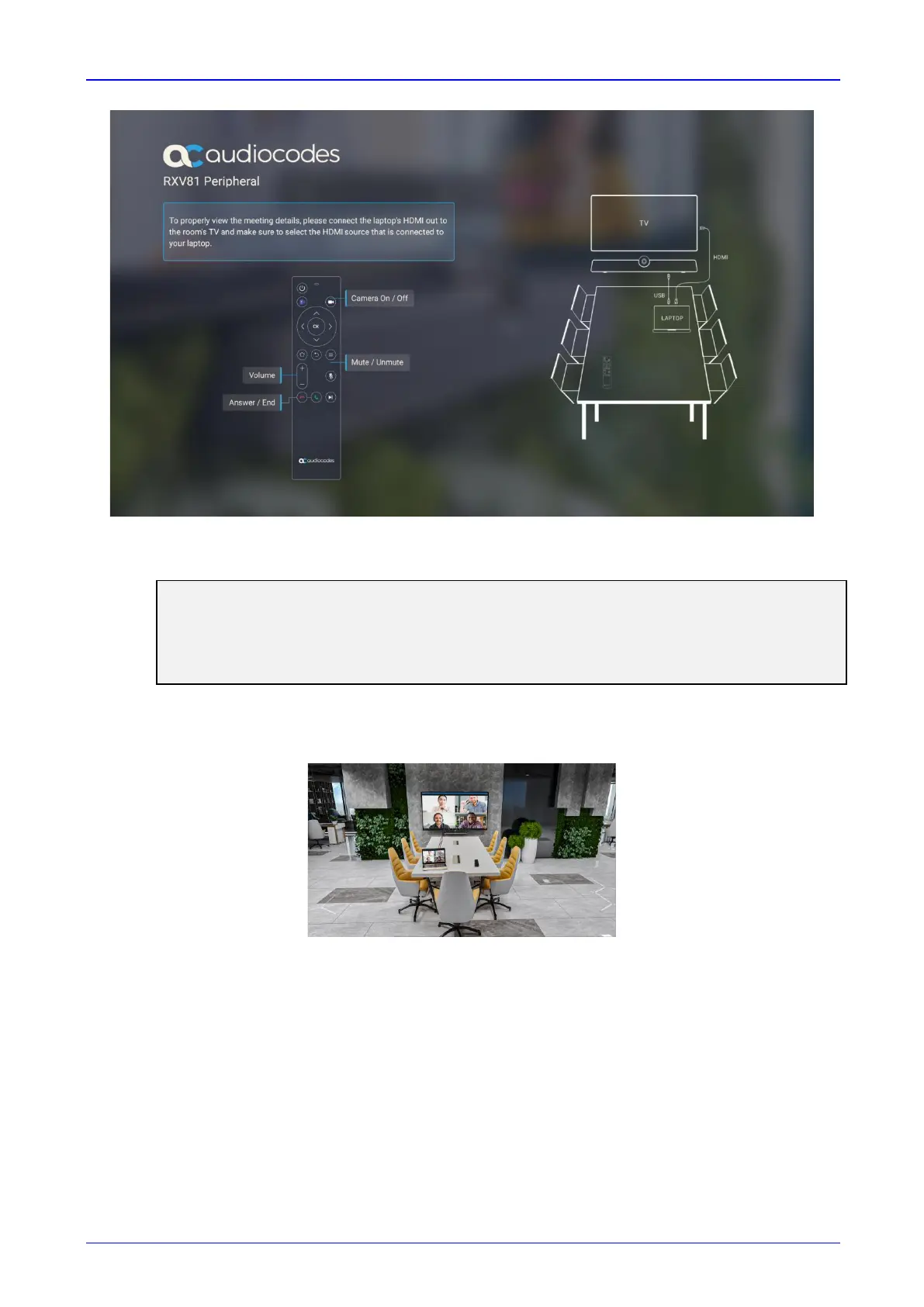 TV using the HDMI cable to properly view meeting details and content sharing.