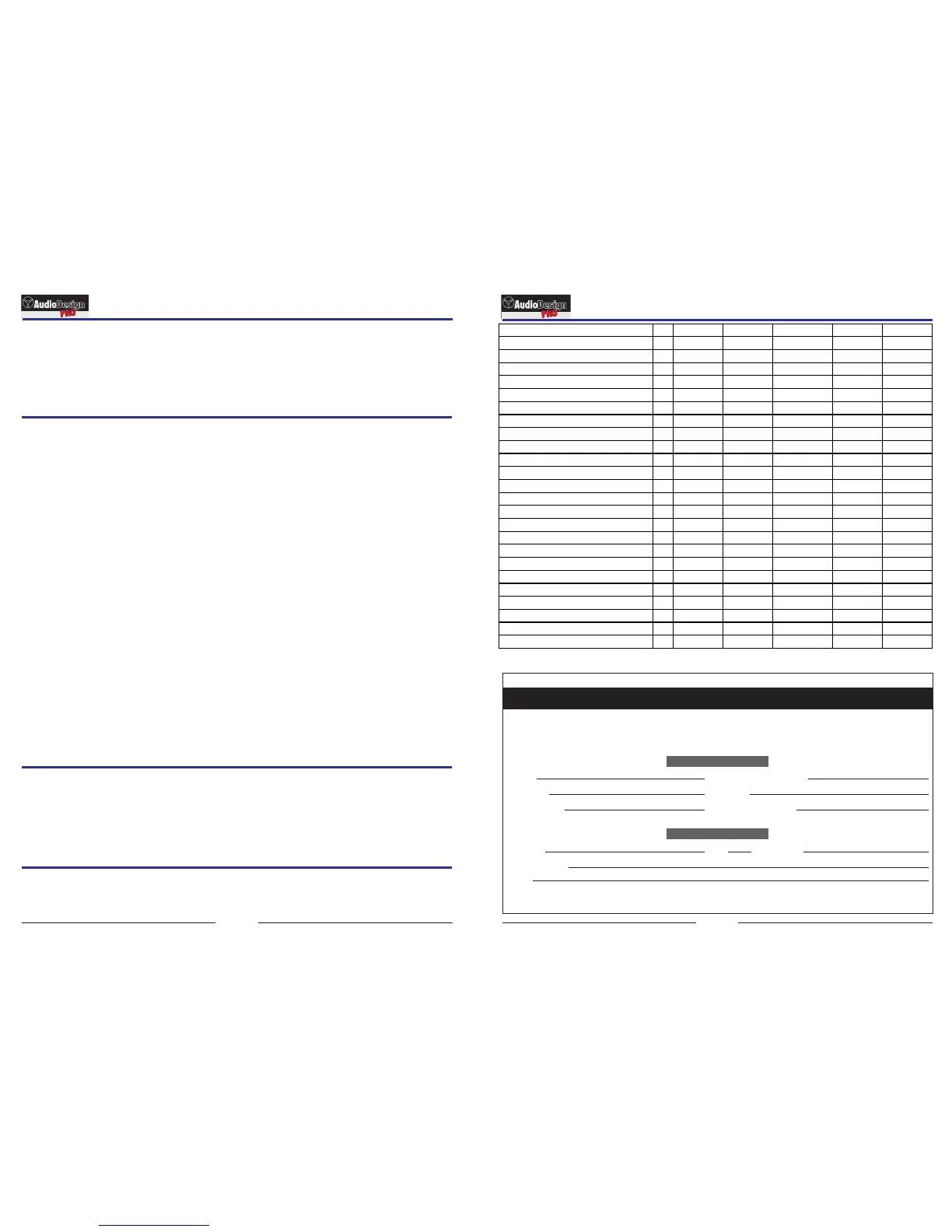 Tutti i prodotti Audio Design PRO sono esaminati e testati prima di lasciare la fabbrica e, se usati