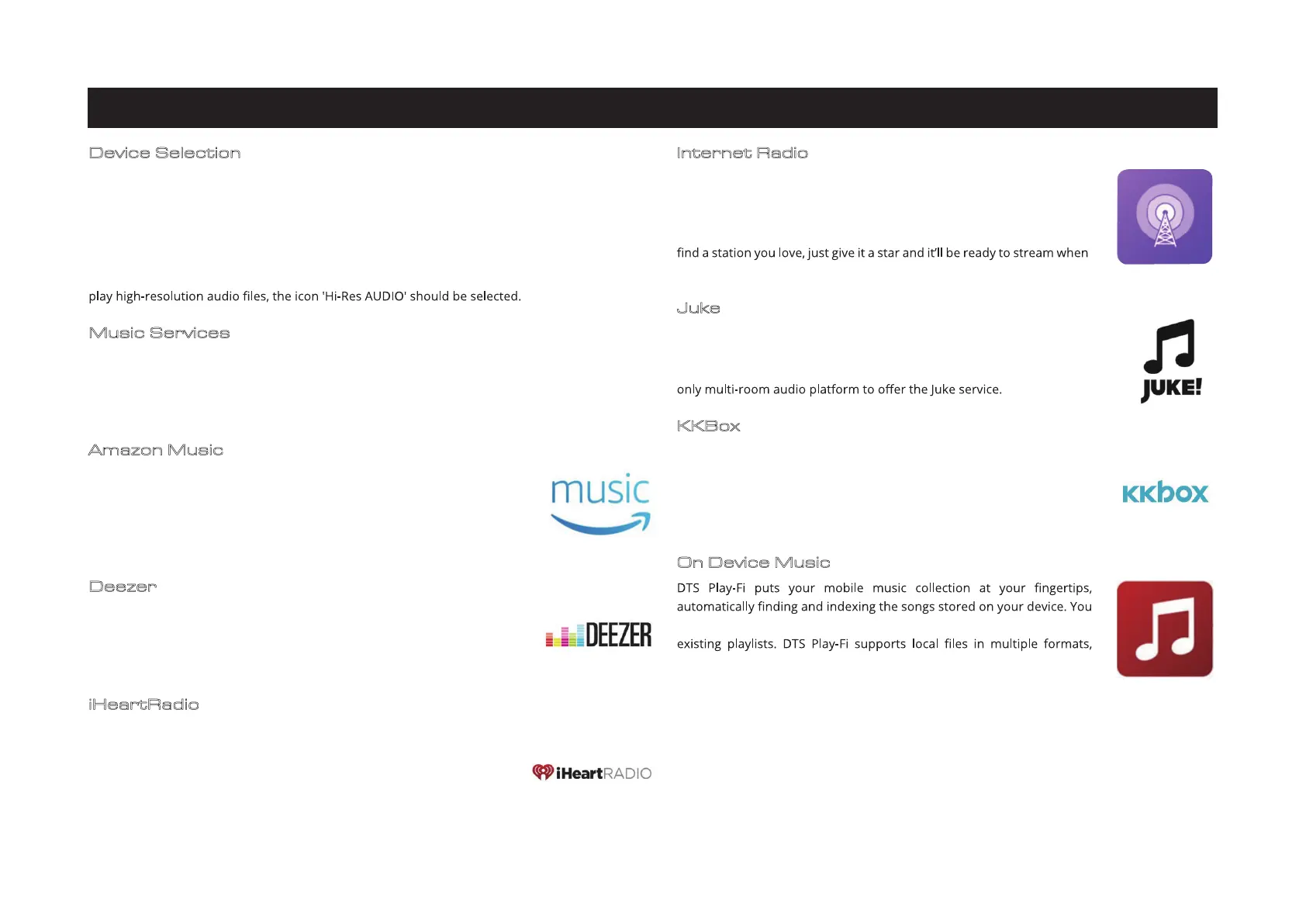 DTS Play-Fi supports the world’s most popular and exciting streaming music services, so you