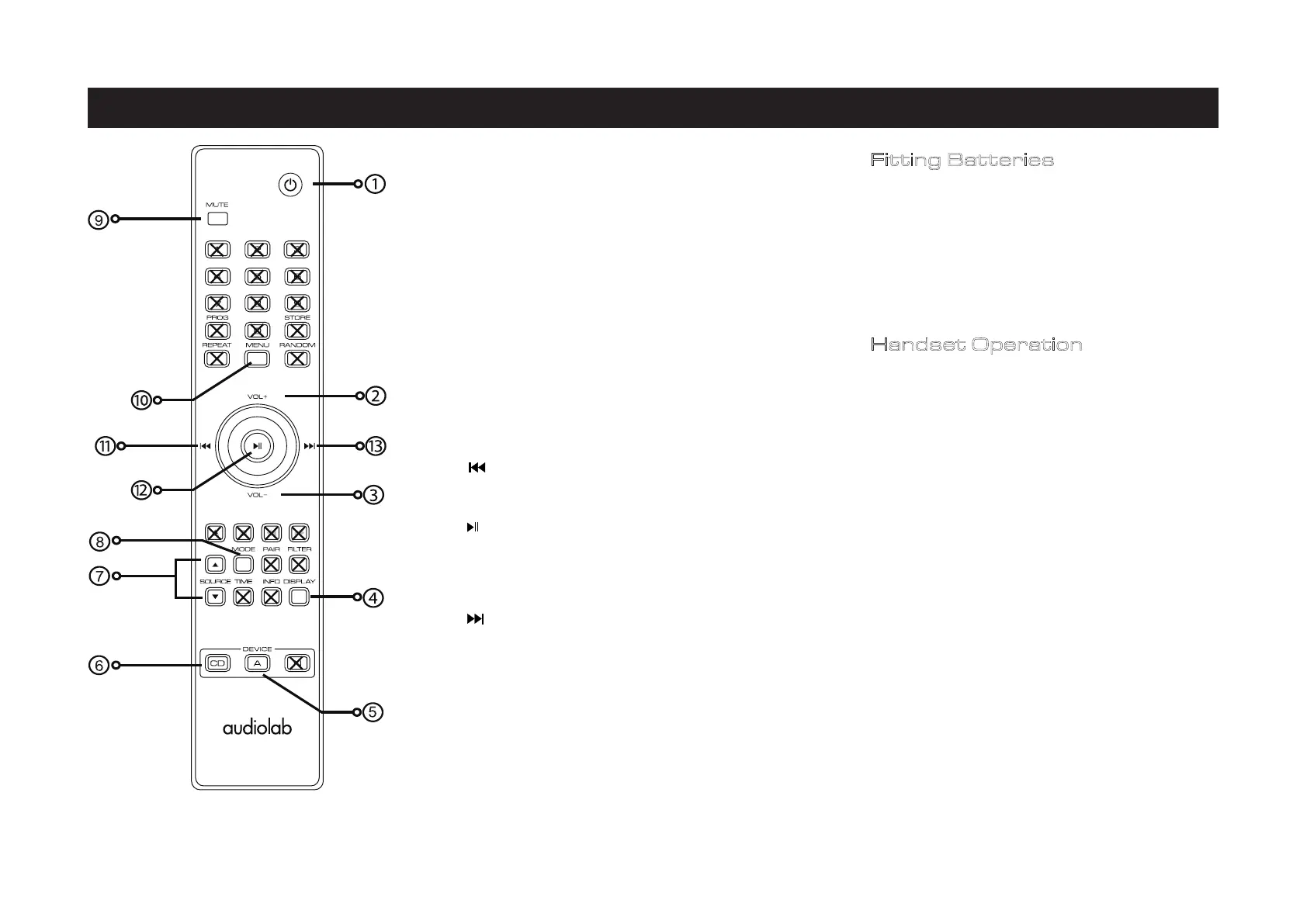 NOTE : the handset buttons shown crossed out are for use with other Audiolab units like