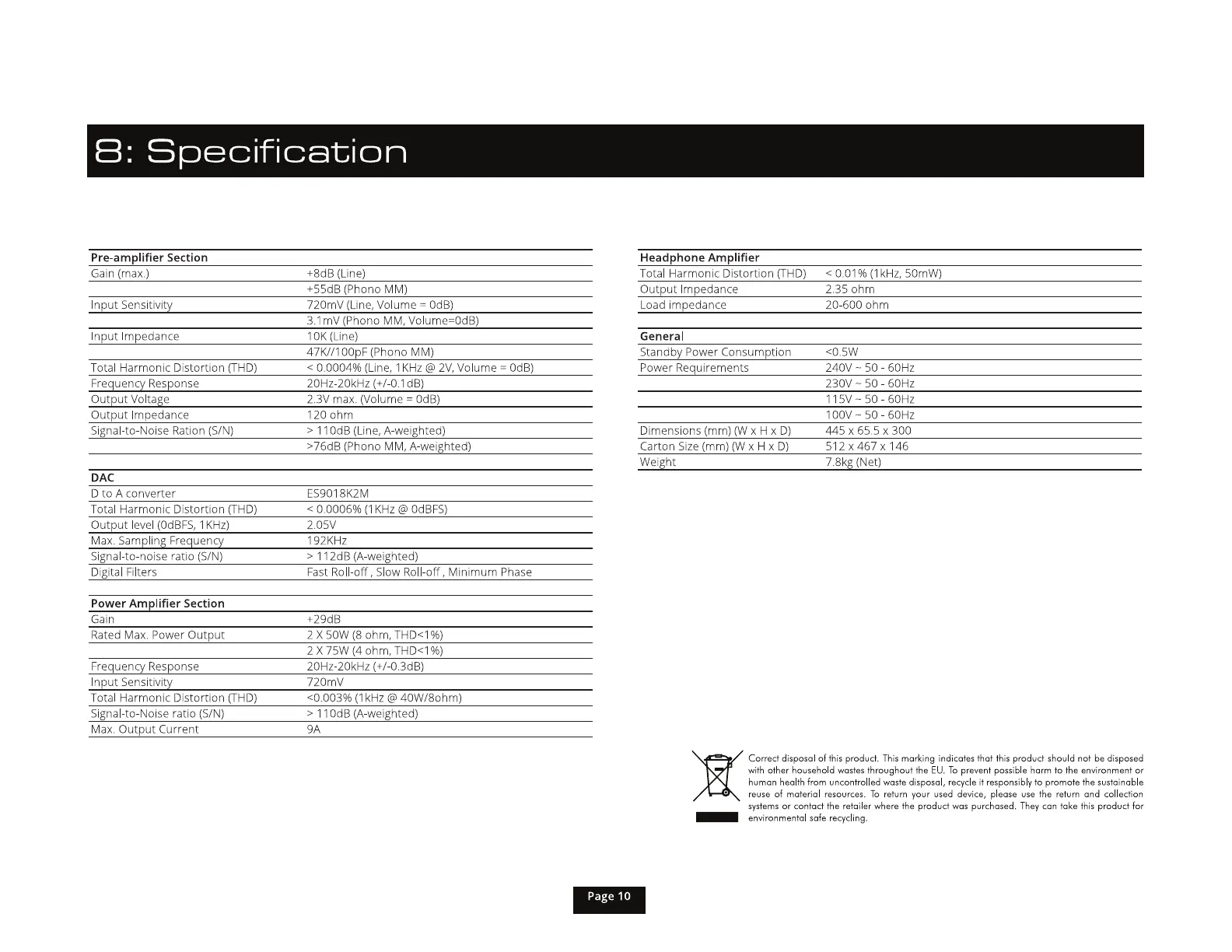 >76dB (Phono MM, A-weighted)