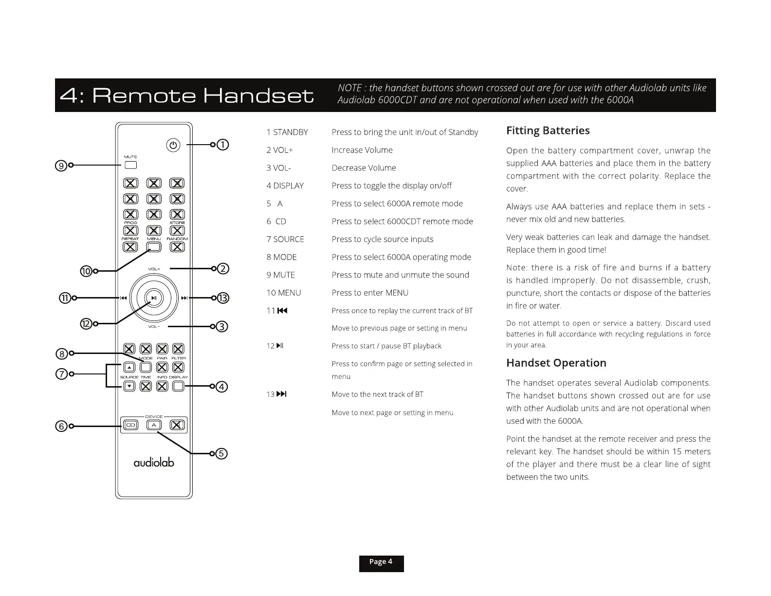 The handset operates several Audiolab components.