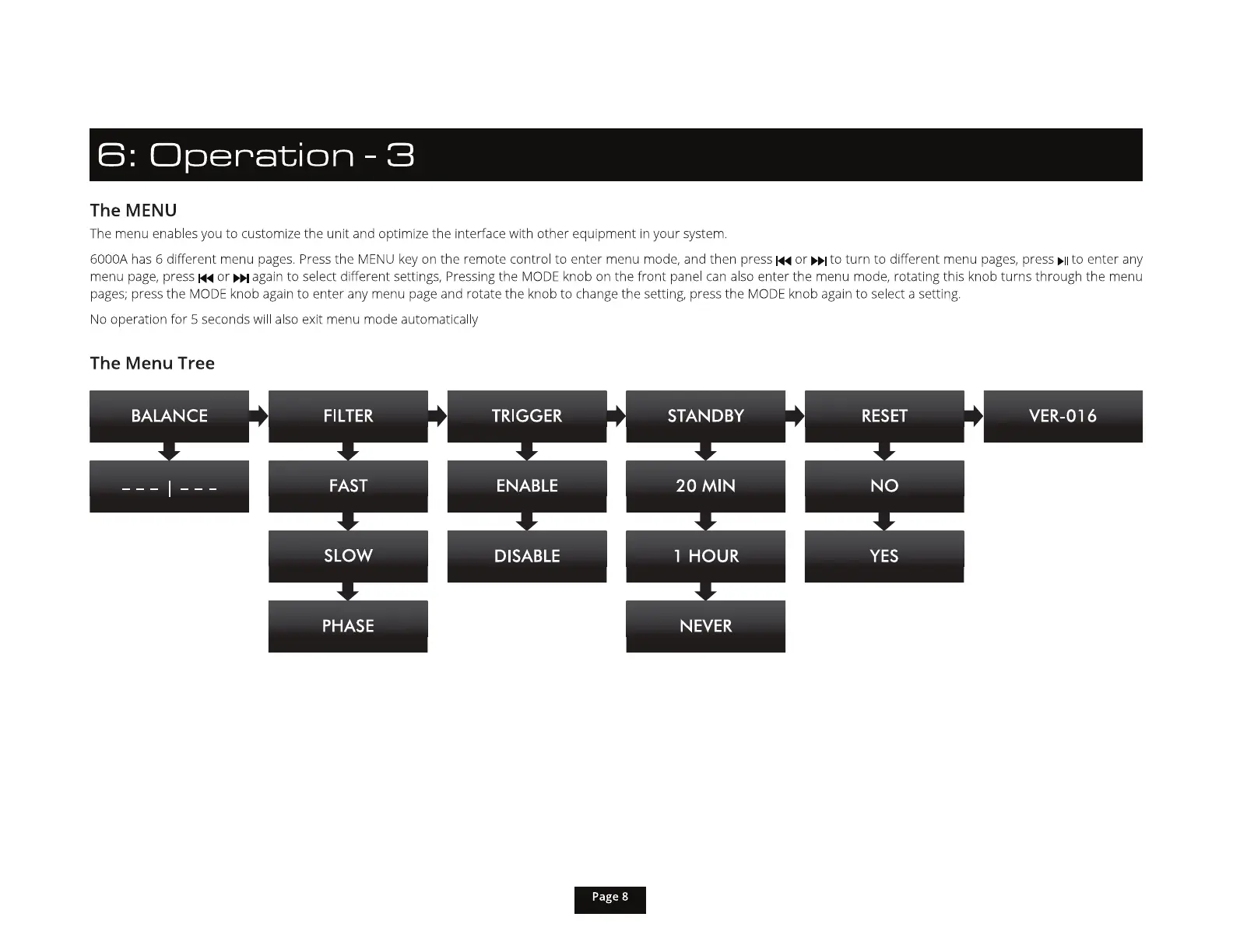 6000A has 6 different menu pages.