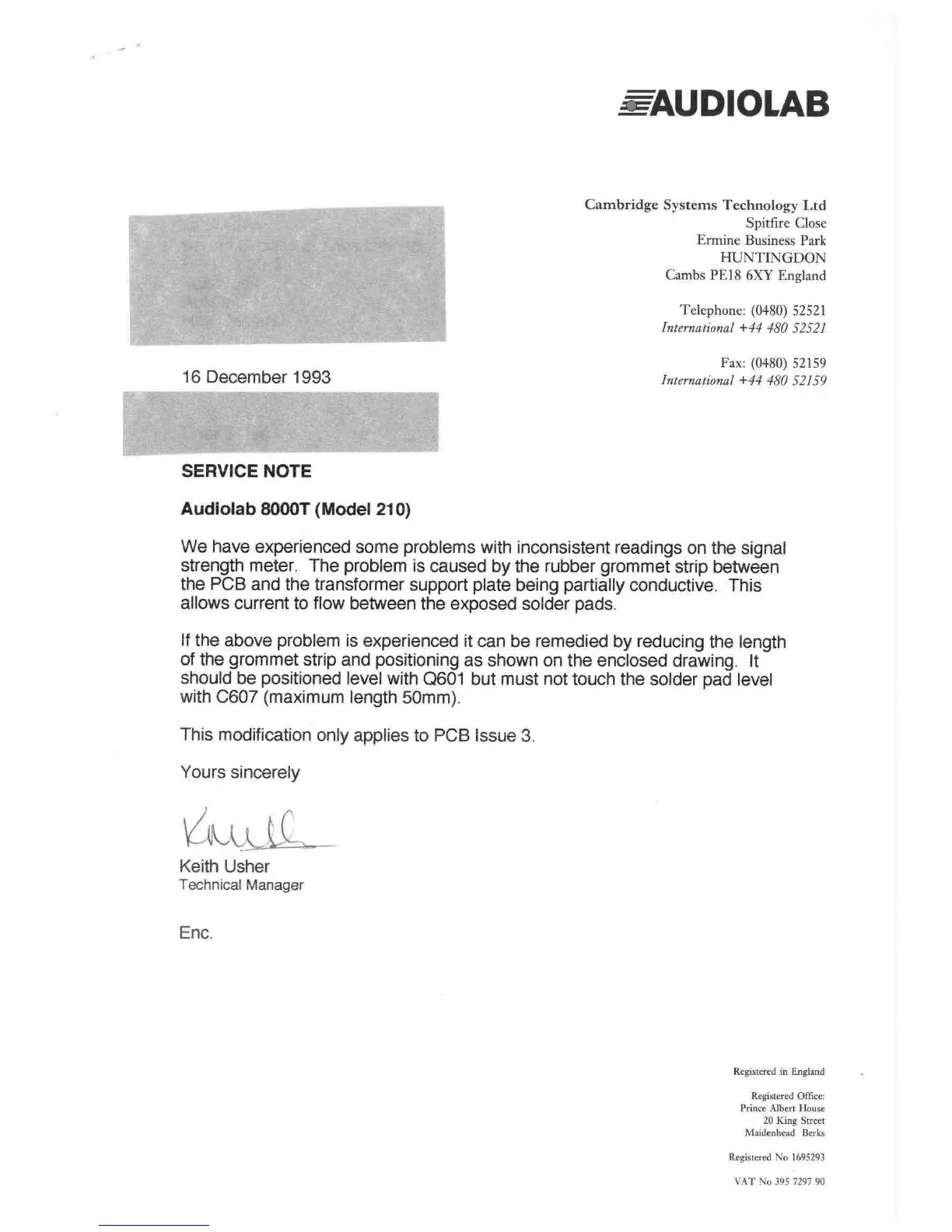 Audiolab 8000T - Audiolab 8000 T Service Notes and Modifications; Signal Strength Meter Troubleshooting