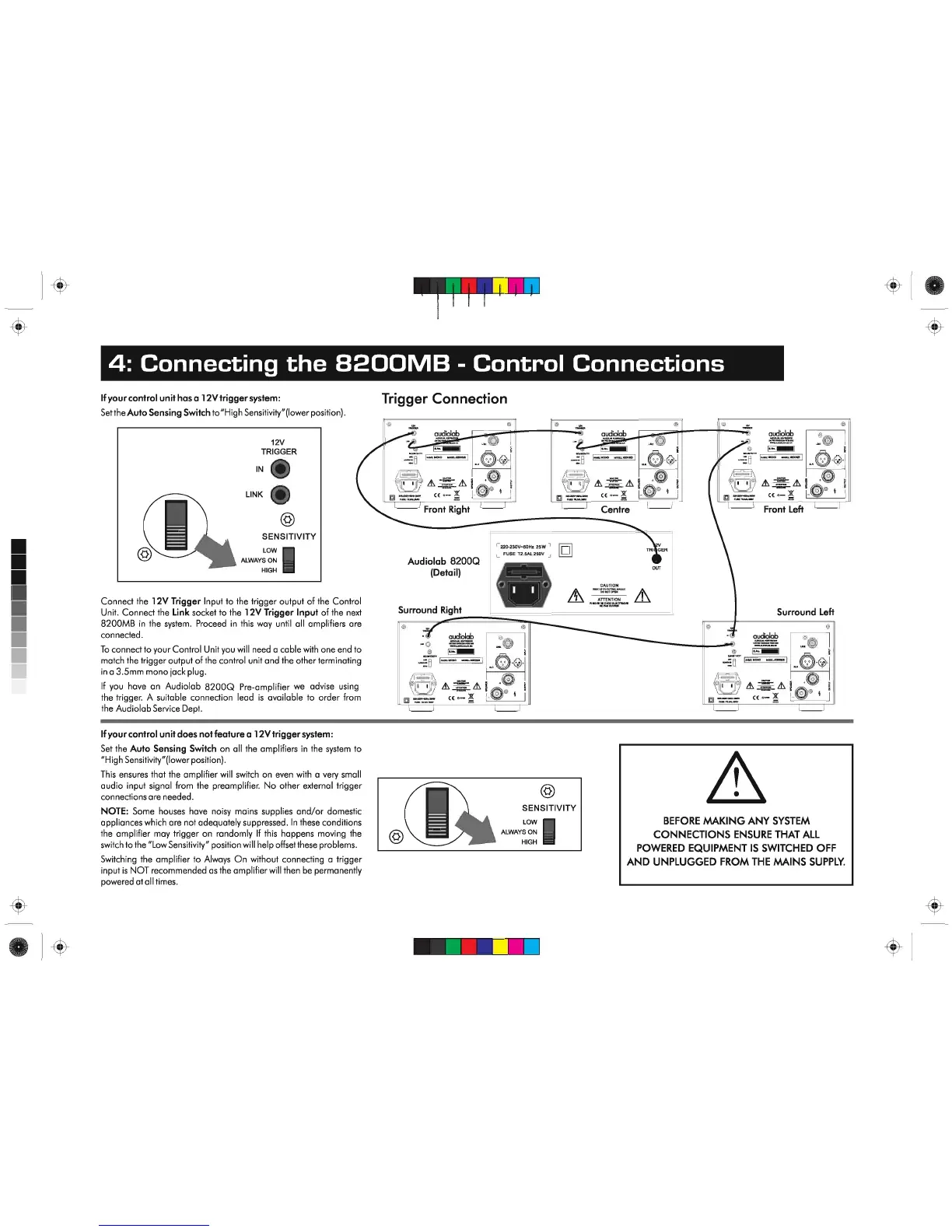 Audiolab 8200MB - Connecting the 8200 MB - Control Connections; Using the 12 V Trigger System; Using Auto Sensing; Critical Safety Warning: Disconnect Power