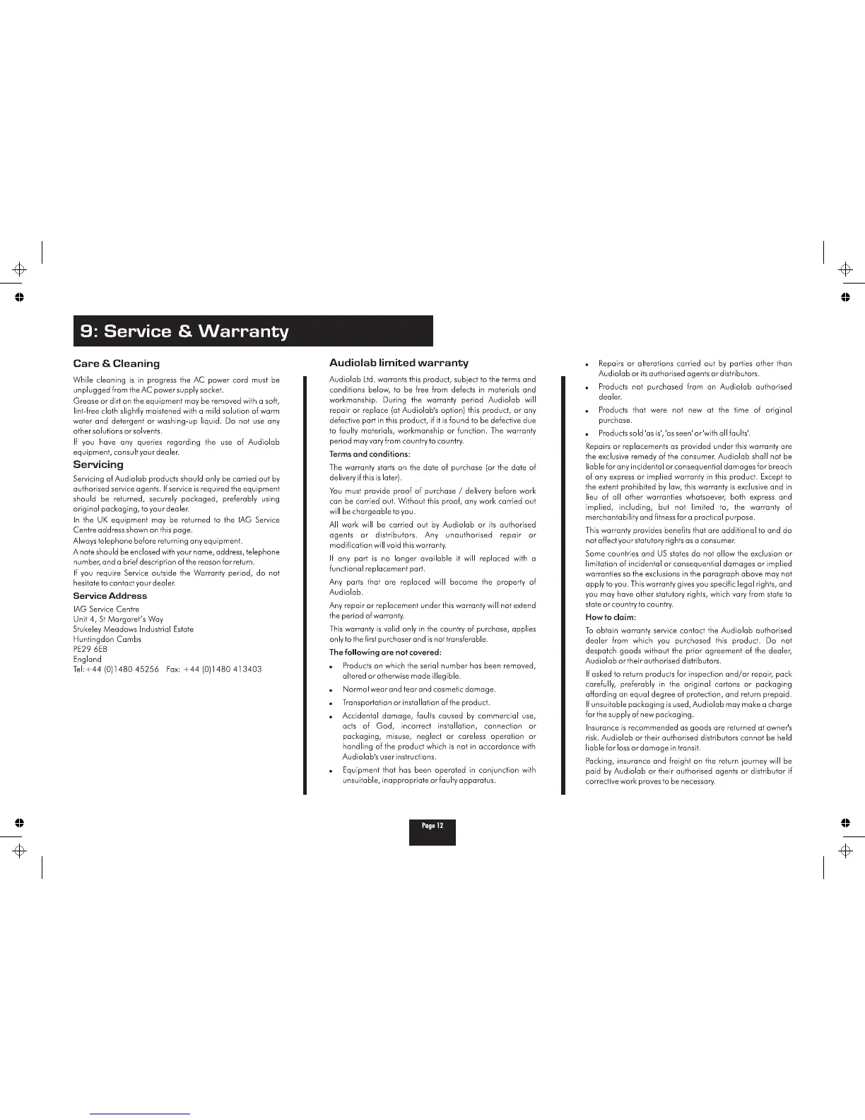 Audiolab 8200T - Service & Warranty Information; Audiolab Limited Warranty Terms