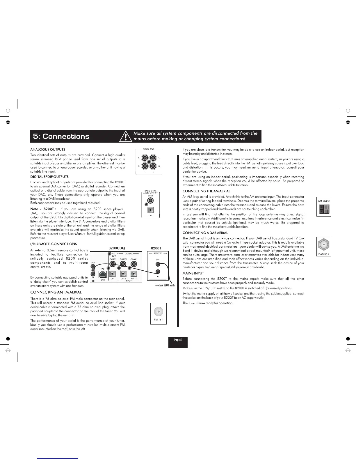Audiolab 8200T - System Connections; Analogue and Digital Audio Outputs; Aerial and Remote Connections