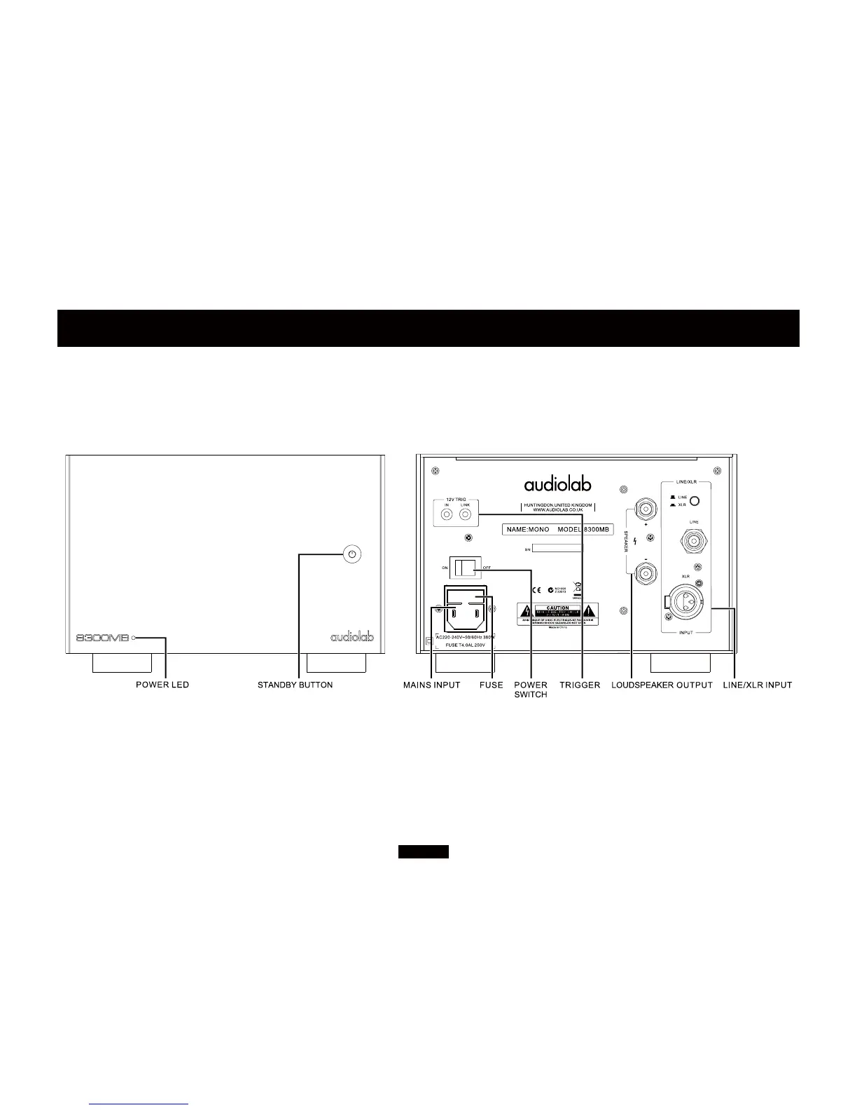 Audiolab 8300MB - Controls and Connectors; Front and Rear Panel Overview