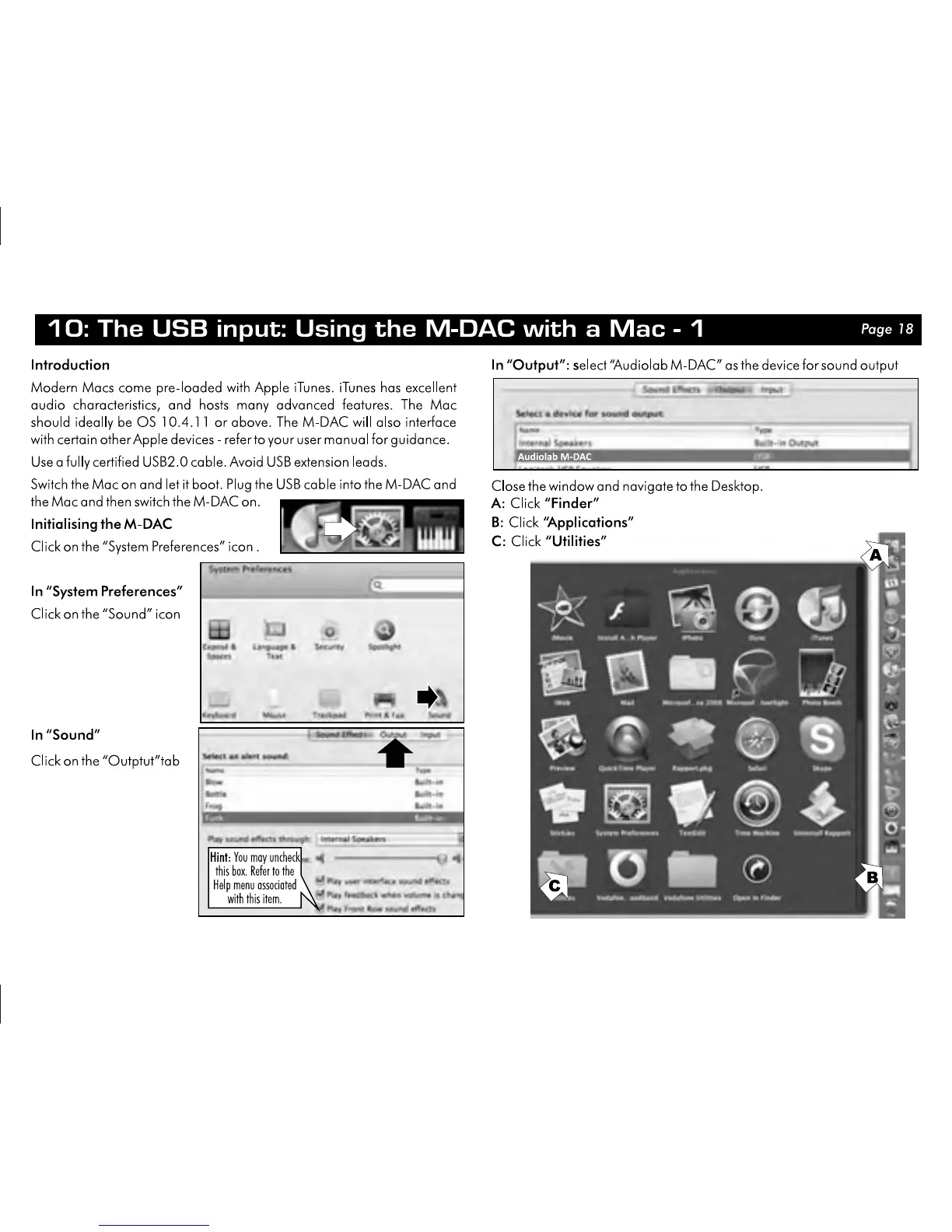 Audiolab M-DAC - The USB input: Using the M-DAC with a Mac - 1; Introduction to Mac USB Usage; Initialising M-DAC on Mac; Sound Output Configuration