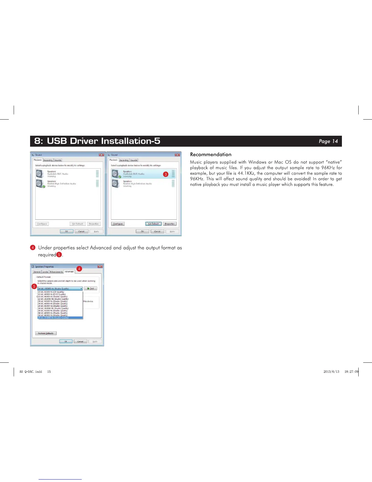 Audiolab Q-DAC - USB Driver Installation - Part 5; Configuring Sound Playback Settings; Setting Advanced Output Format