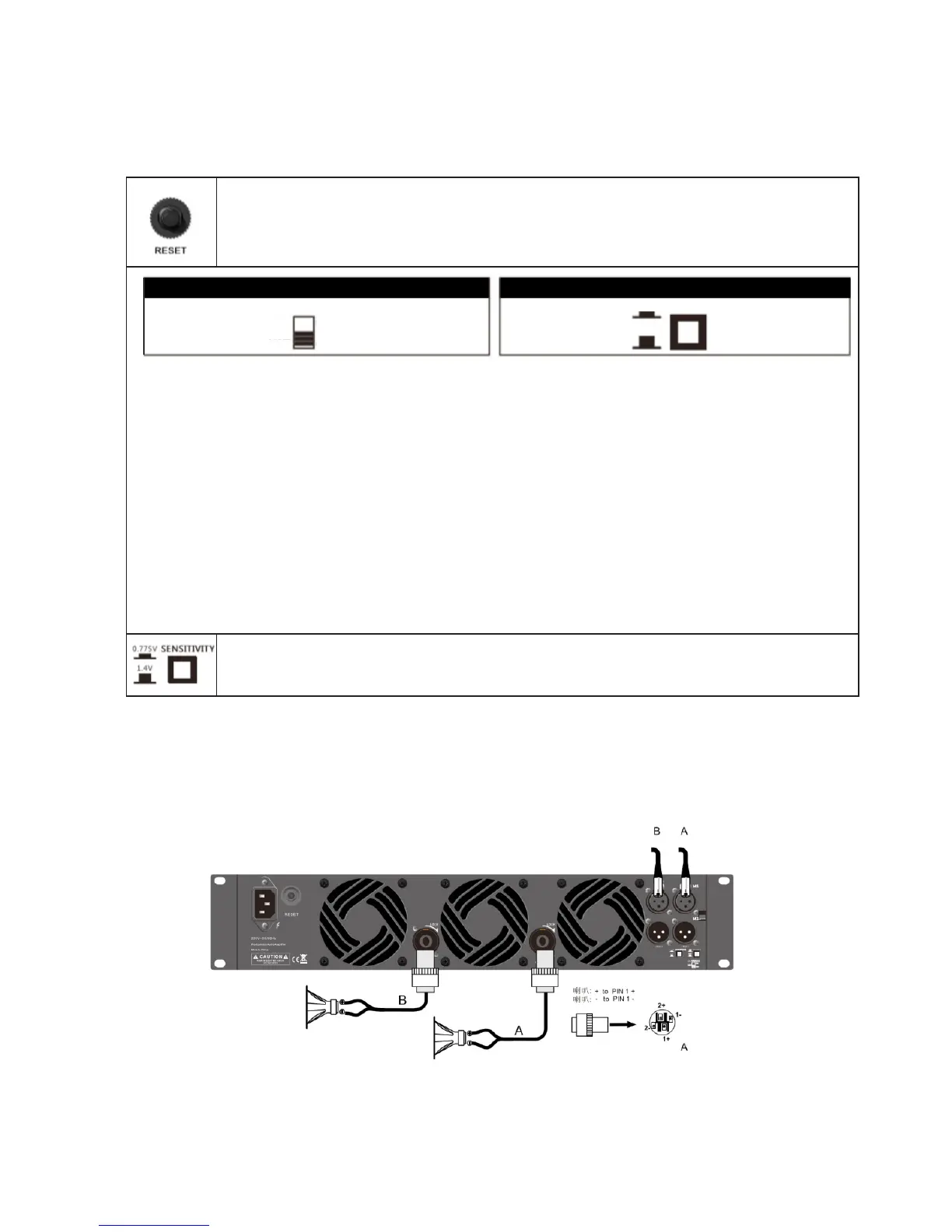 salida de los canales 1 y 2. El conector de entrada del canal 2 no tiene función. El usuario podrá regular