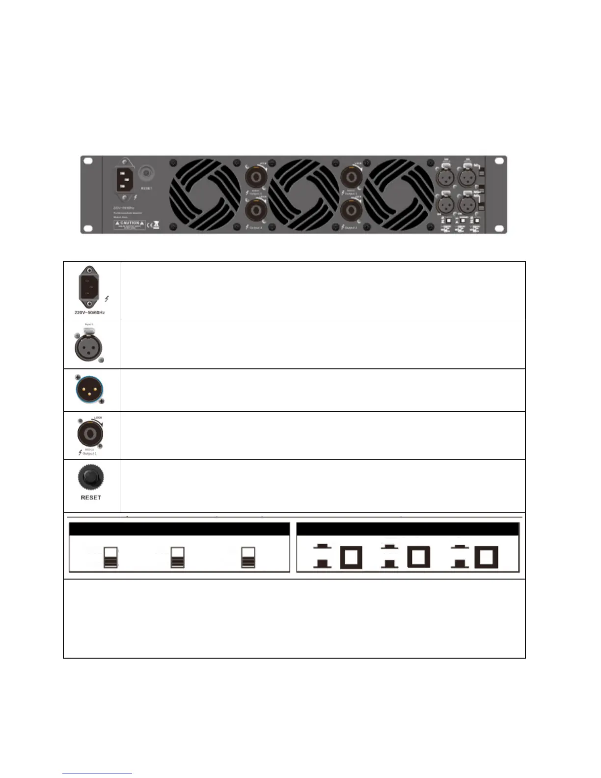 Conector de salida: Canal de salida del amplicador. Utilice un conector SPEAKON para