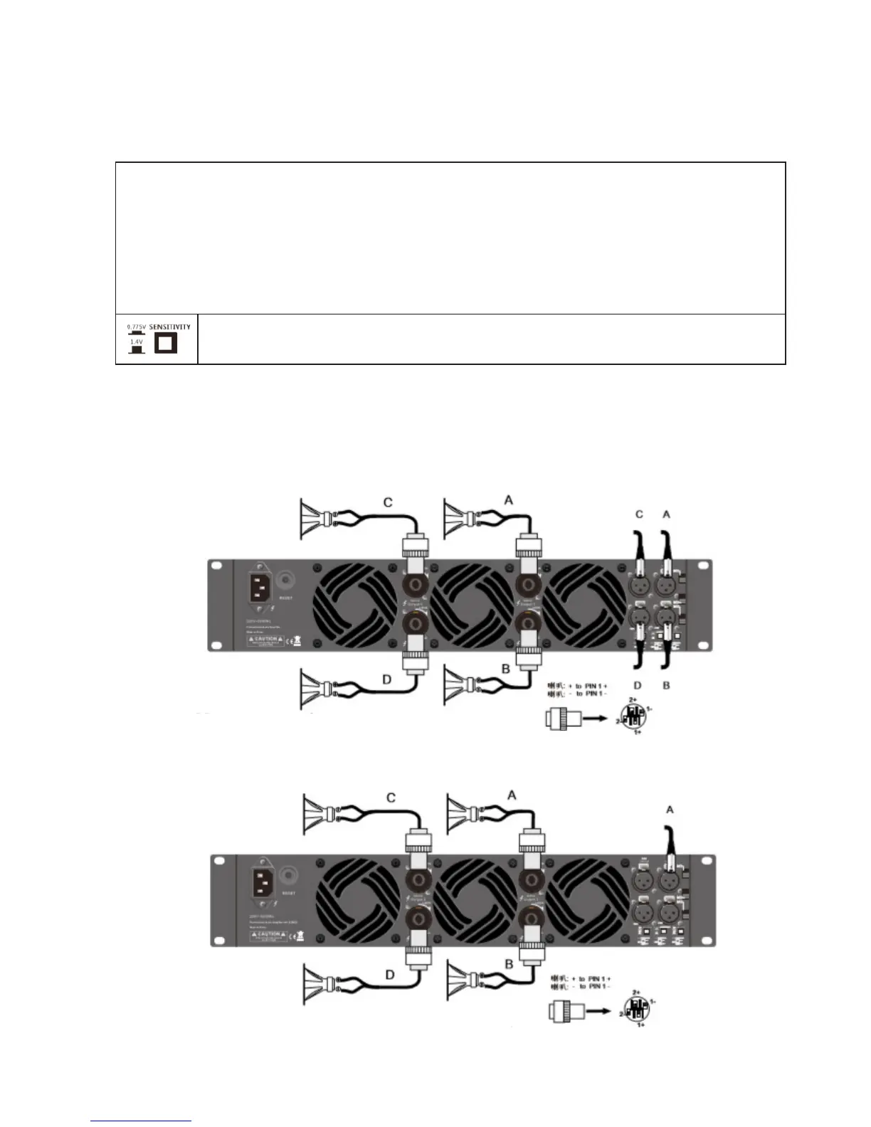 Modo PARALELO (parallel): La señal de entrada del canal 1 viene del puente de los conectores de salida