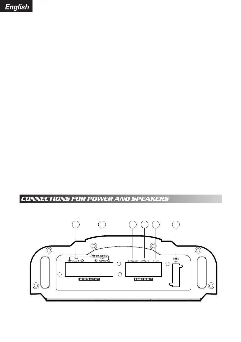 operation. Right (bridged) input allows single channel input for bridged operation. This is