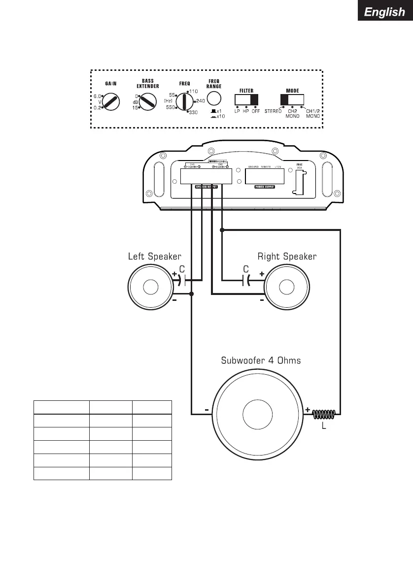 NOTE: Choose the same frequency for both LP and HP crossovers. Do not overlap