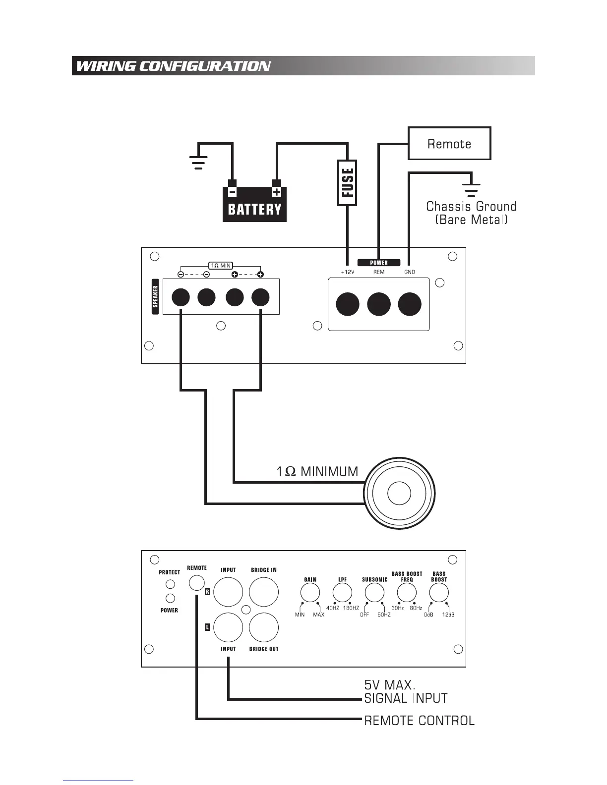 Audiopipe APSM-1300 - Wiring Configurations; One Speaker Mono Wiring (APSM-1300;APSM-1500)