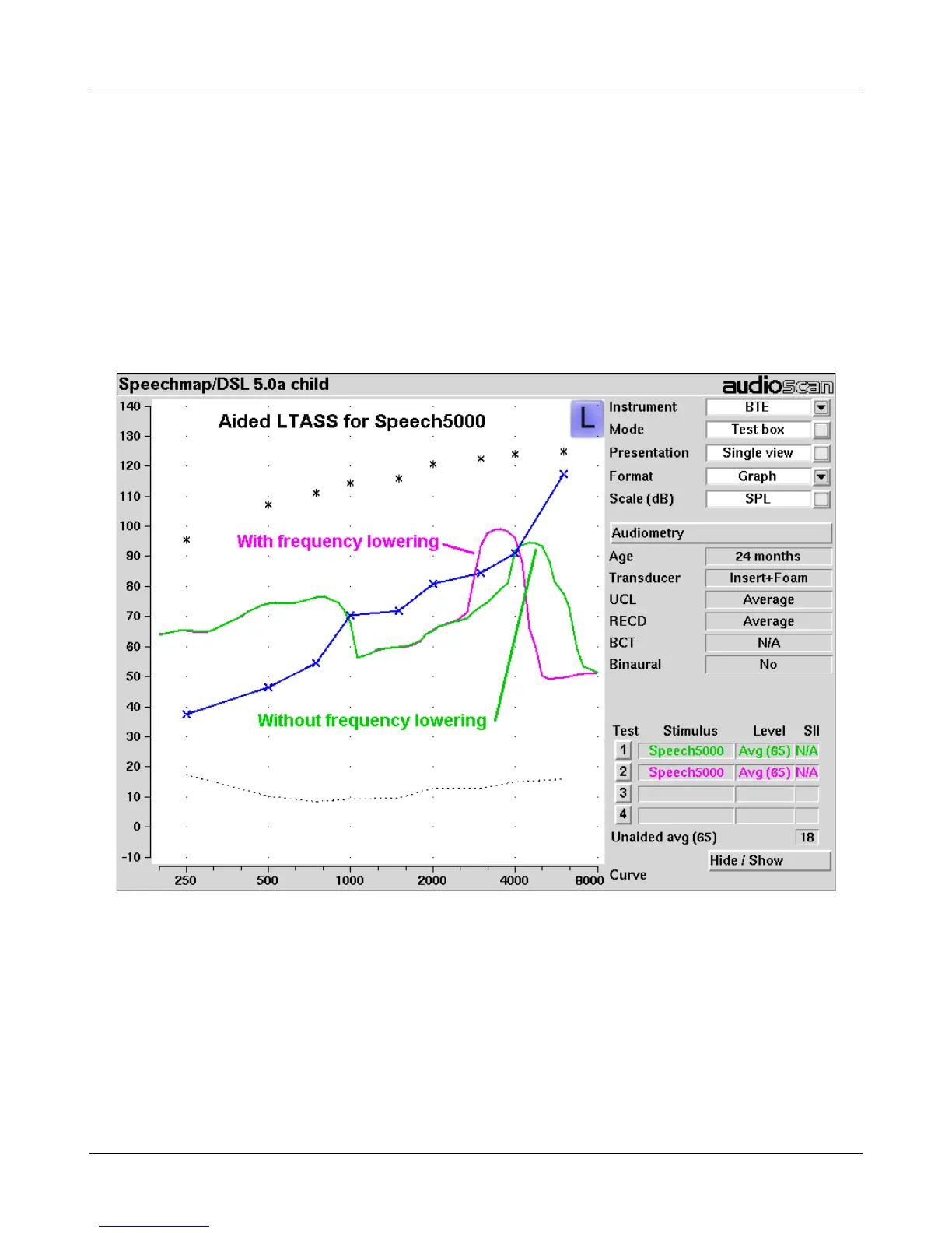 It is assumed that the hearing aid has been set up for optimal audibility and maximum output. See other sections