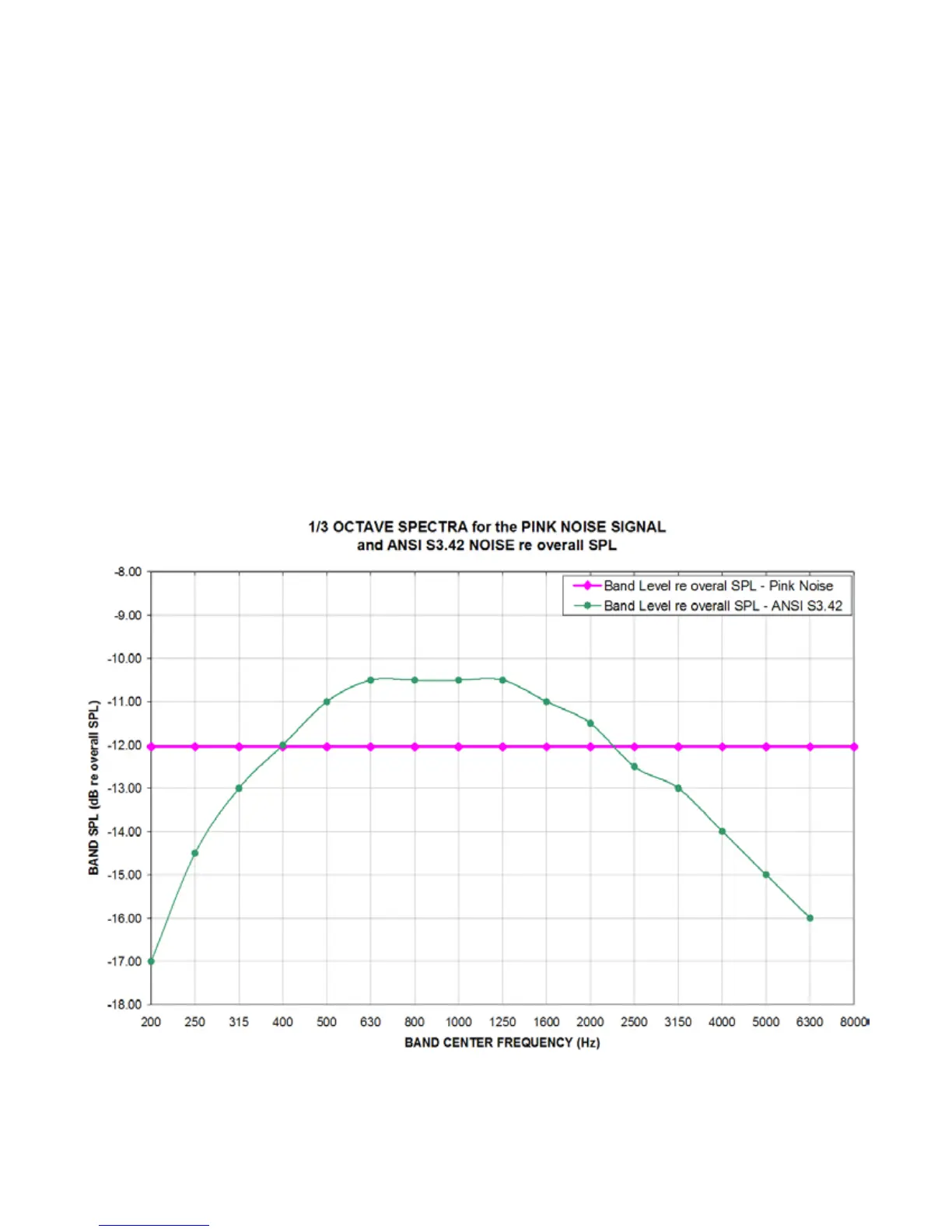 Figure 1: 1/3 octave spectra for the pink noise signal and the noise signal specied in ANSI S3.42-1997.