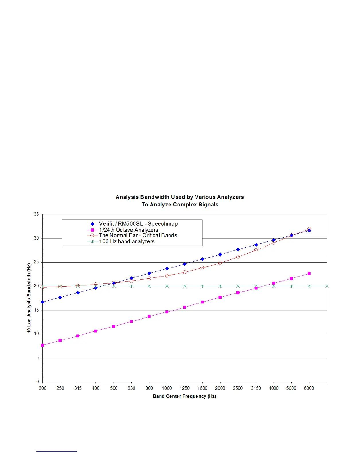 Figure 7: Analysis bandwidths of some real-ear analyzers and critical bands for a normal ear. If the analysis