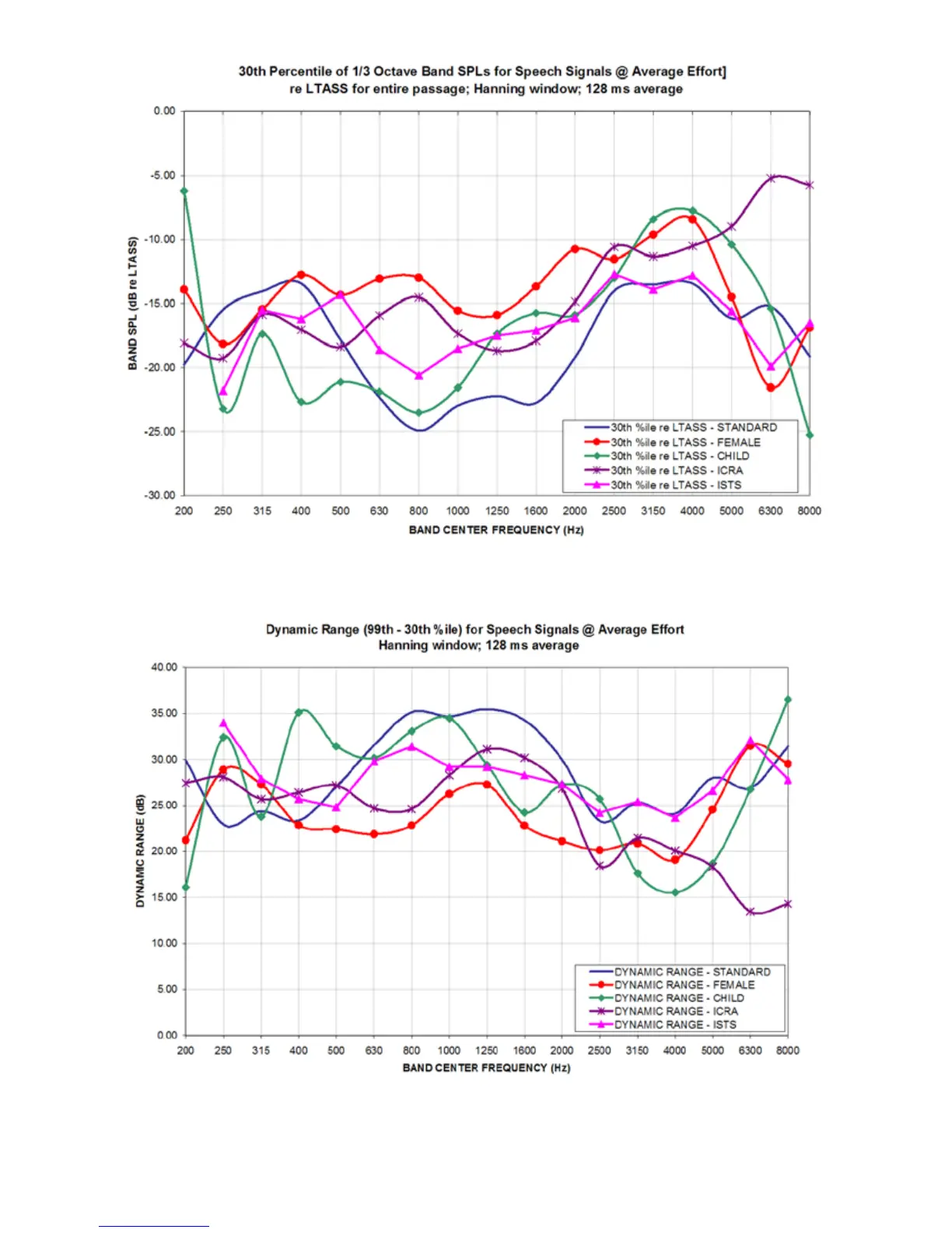Figure 14: Level of 30th percentile for Speechmap speech signals at average vocal effort