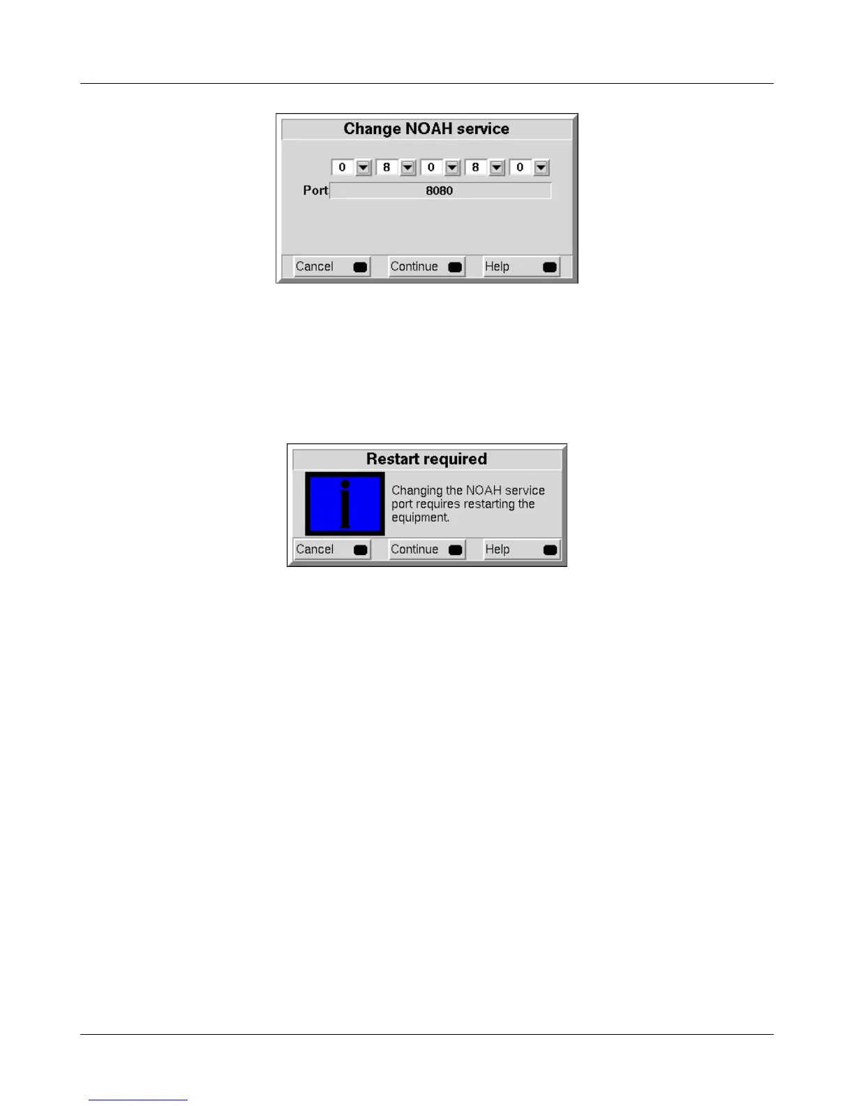 4. You will be prompted to restart the equipment. Select <Continue> to restart, or <Cancel> to enter a different