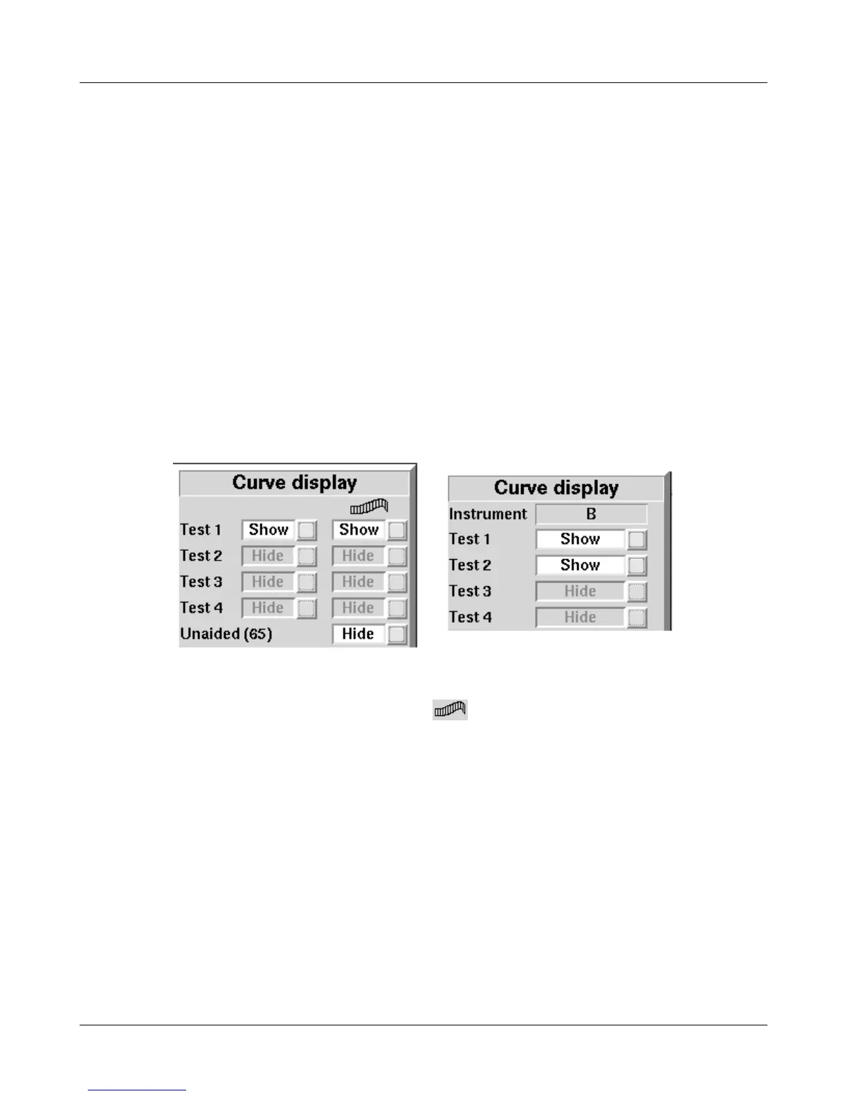 2. Highlight, then <PICK> the desired test to toggle between the Hide or Show options. The curve will toggle