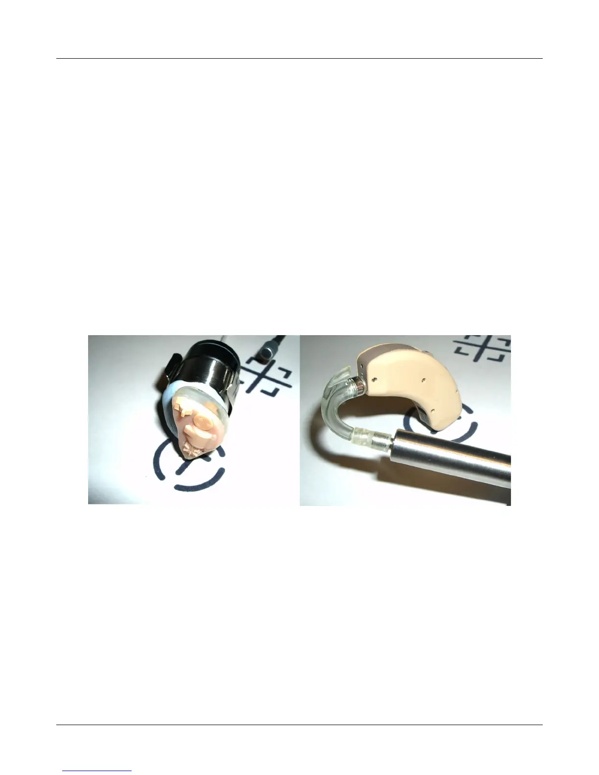 6. Position the hearing instrument on the ‘T’ inscription on the test chamber floor vertically oriented as worn by