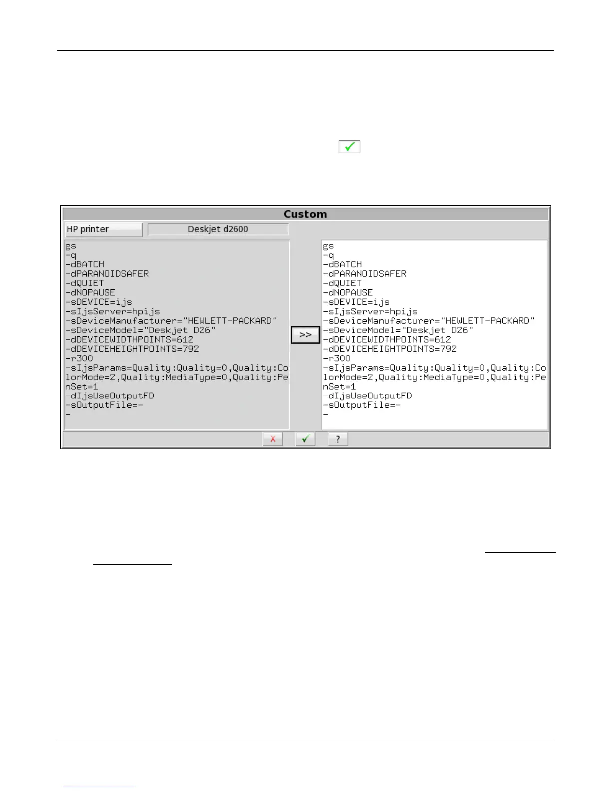 In the HP Printer selection dialog shown above, click the [Custom] button. In the Custom dialog shown below,