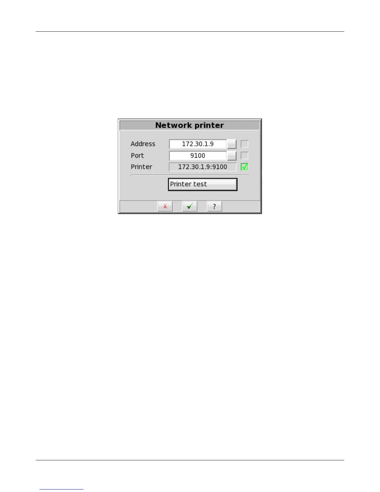 172.30.1.9) and the port (e.g. 9100). To test the Network printer details, click the [Printer test] button. If the test