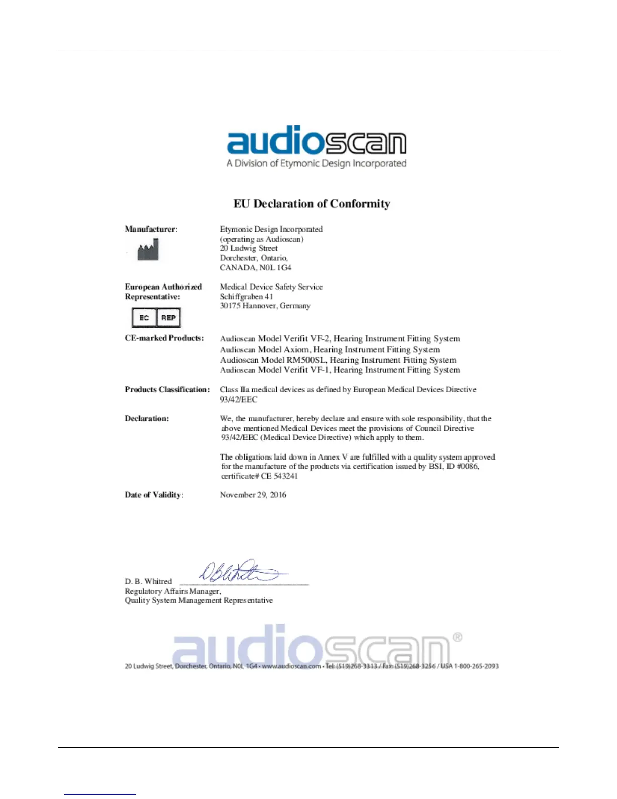 audioscan verifit - EC Declaration of Conformity