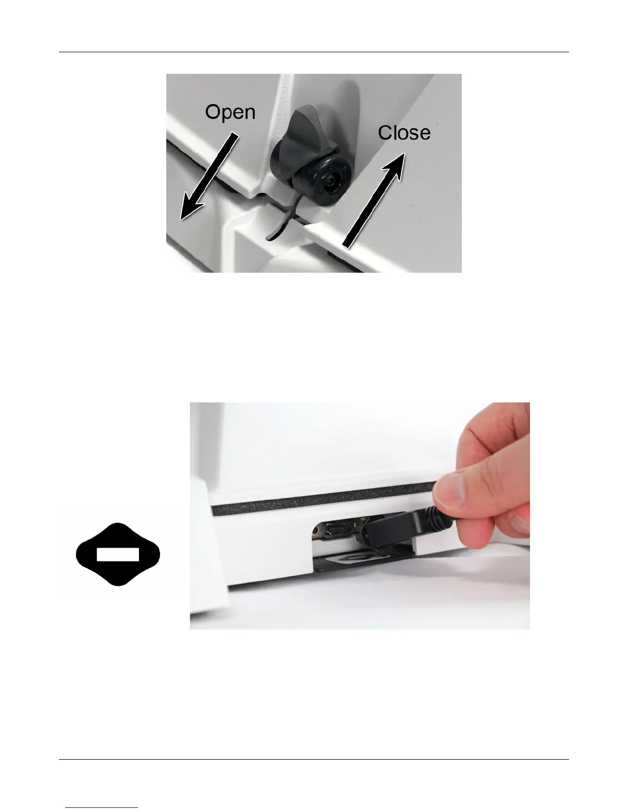 5. Open the lid of the test chamber by using your thumb to roll the rubber roller toward the front of the Verifit.