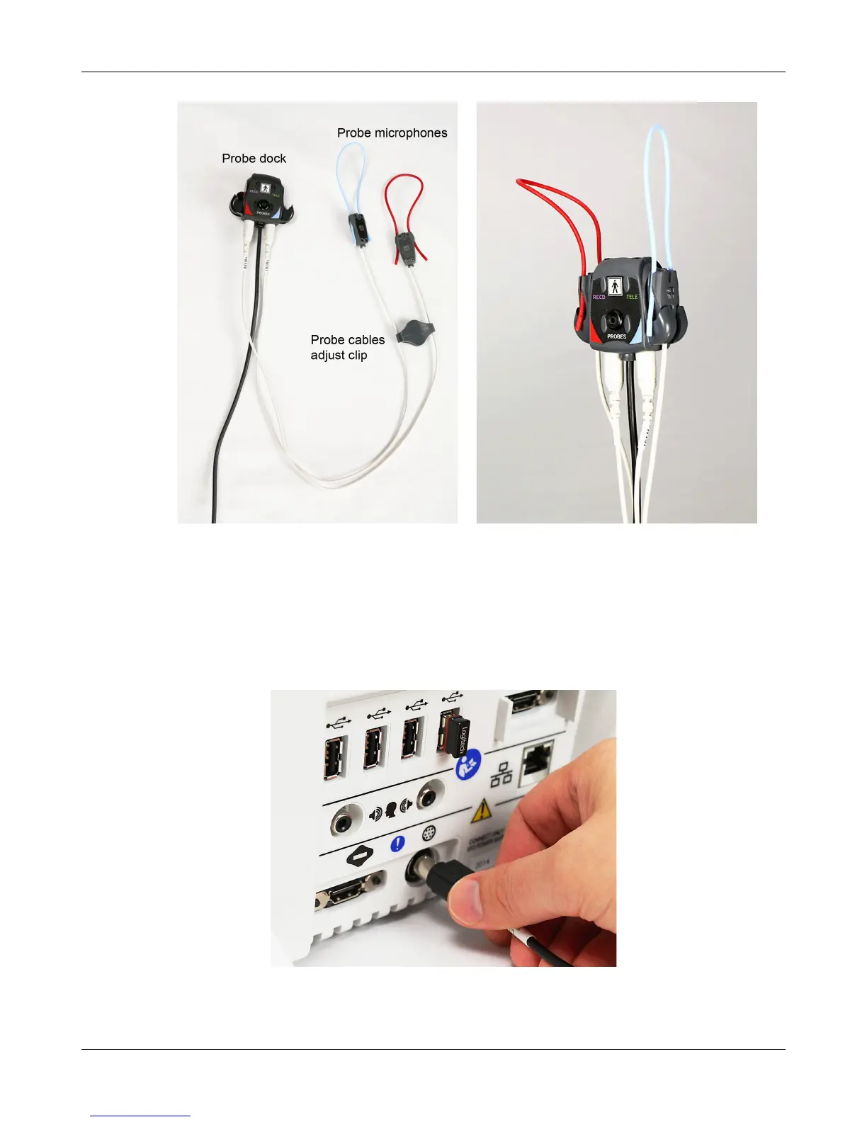 3. Link the probe microphone cables with the probe cables adjust clip as shown above.