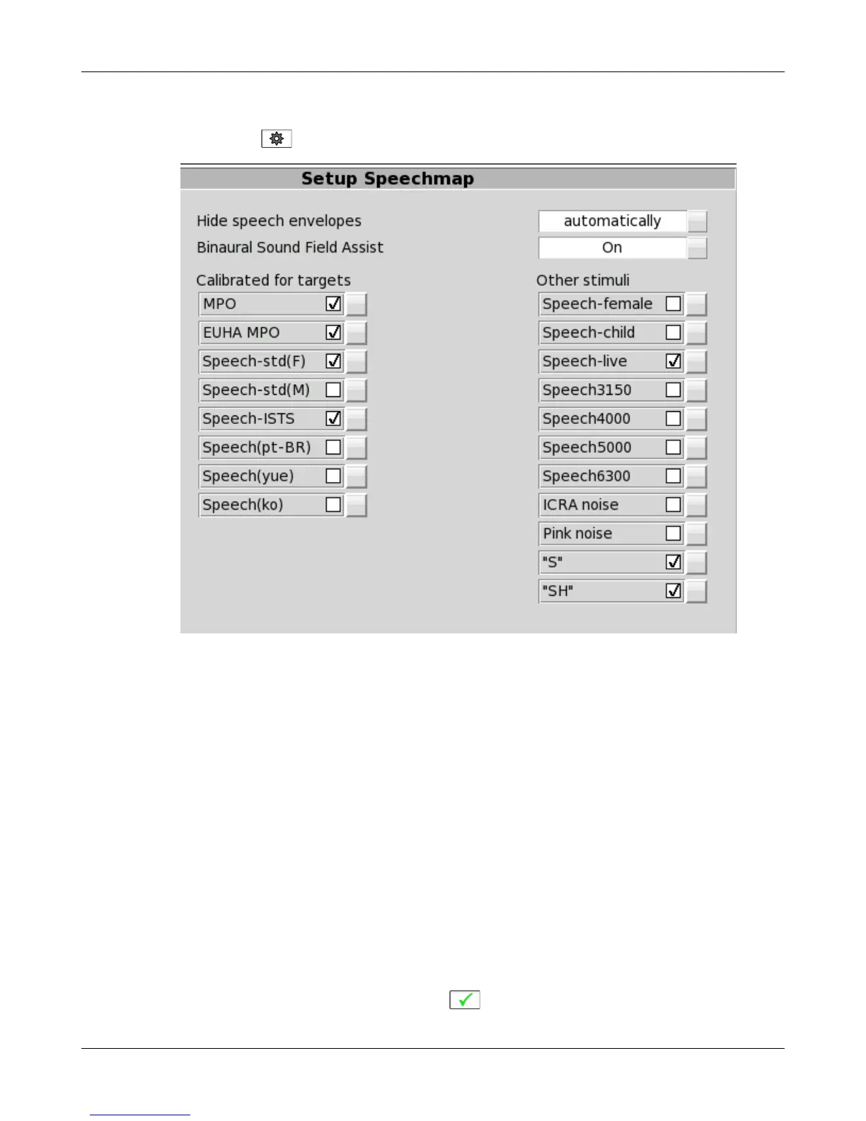 select at least one of the defined LTASS speech stimuli. An alternative MPO stimulus (EUHA MPO) is