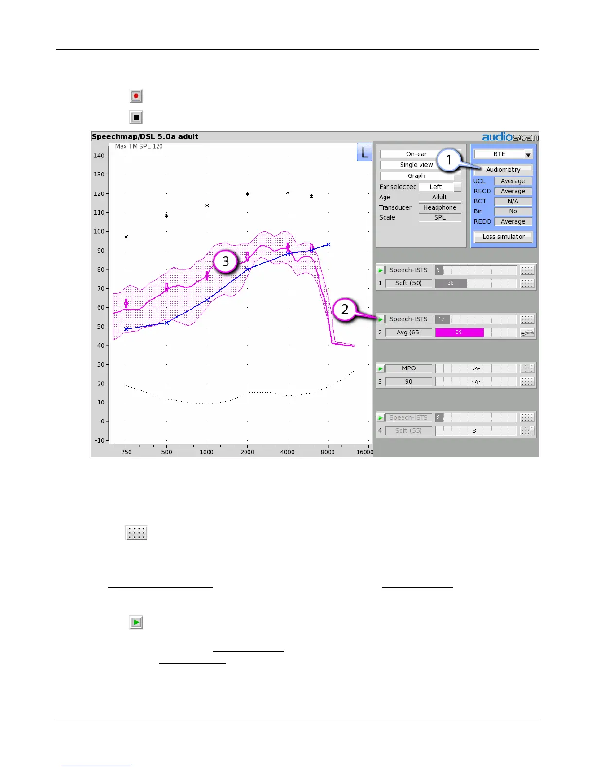 See Speechmap screen choices for setup and audiometric data entry. See Using Speechmap.
