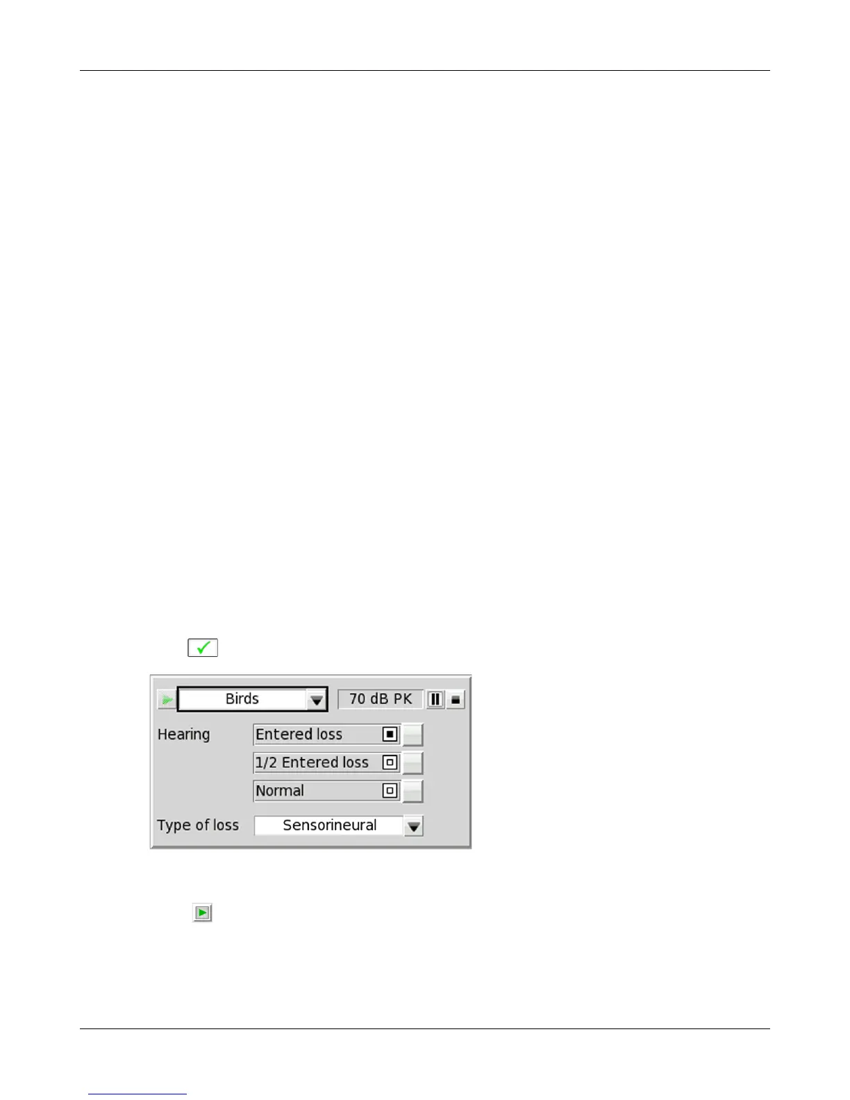 6. Click . Sound, processed to simulate the entered hearing loss, will be presented via the sound field