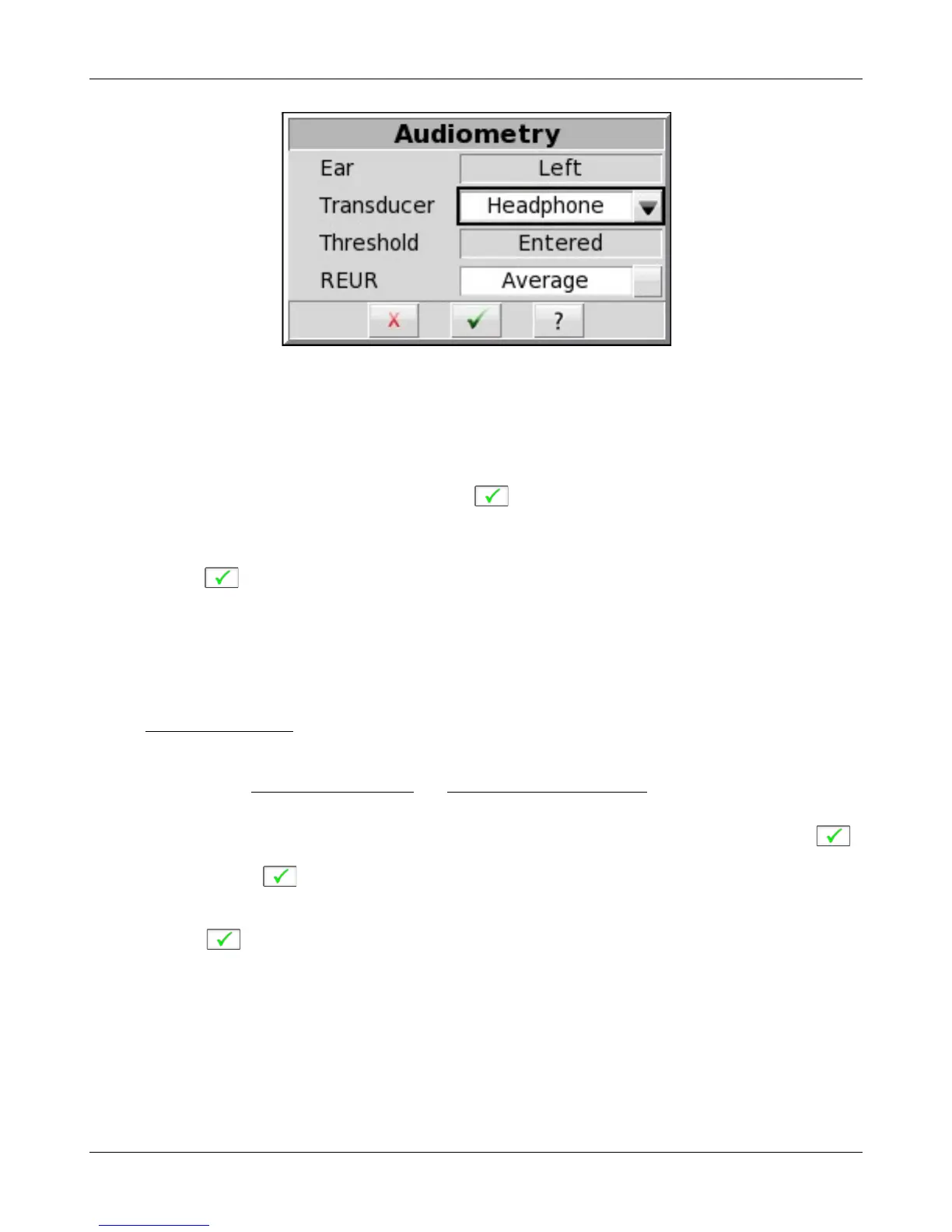 3. If REUR is set to Average, select [Audiometry] then click [REUR] to toggle to [Measure]. Press to