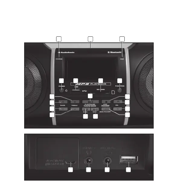 12. Touche de mode Lecture/Pause/Appairage/FM