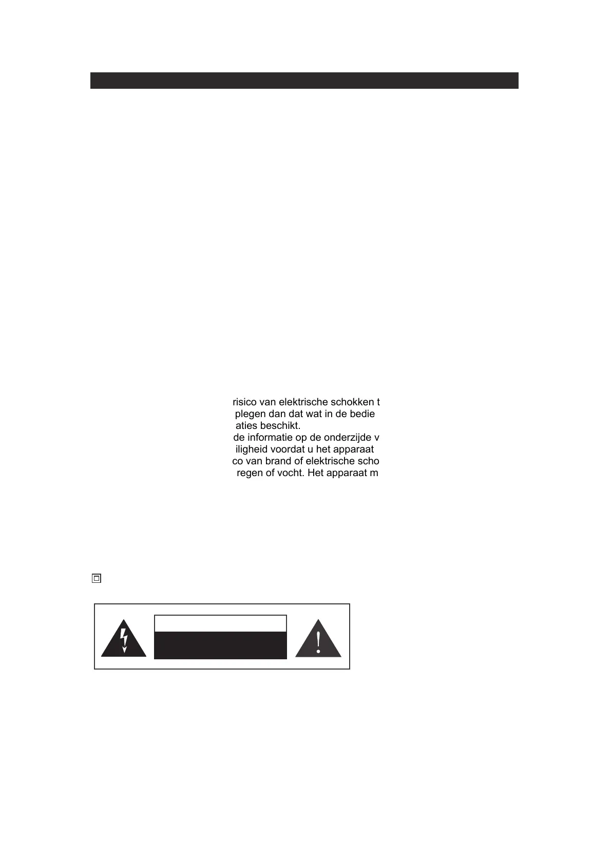 product niet bloot te stellen aan regen of vocht. Het apparaat mag niet worden blootgesteld aan