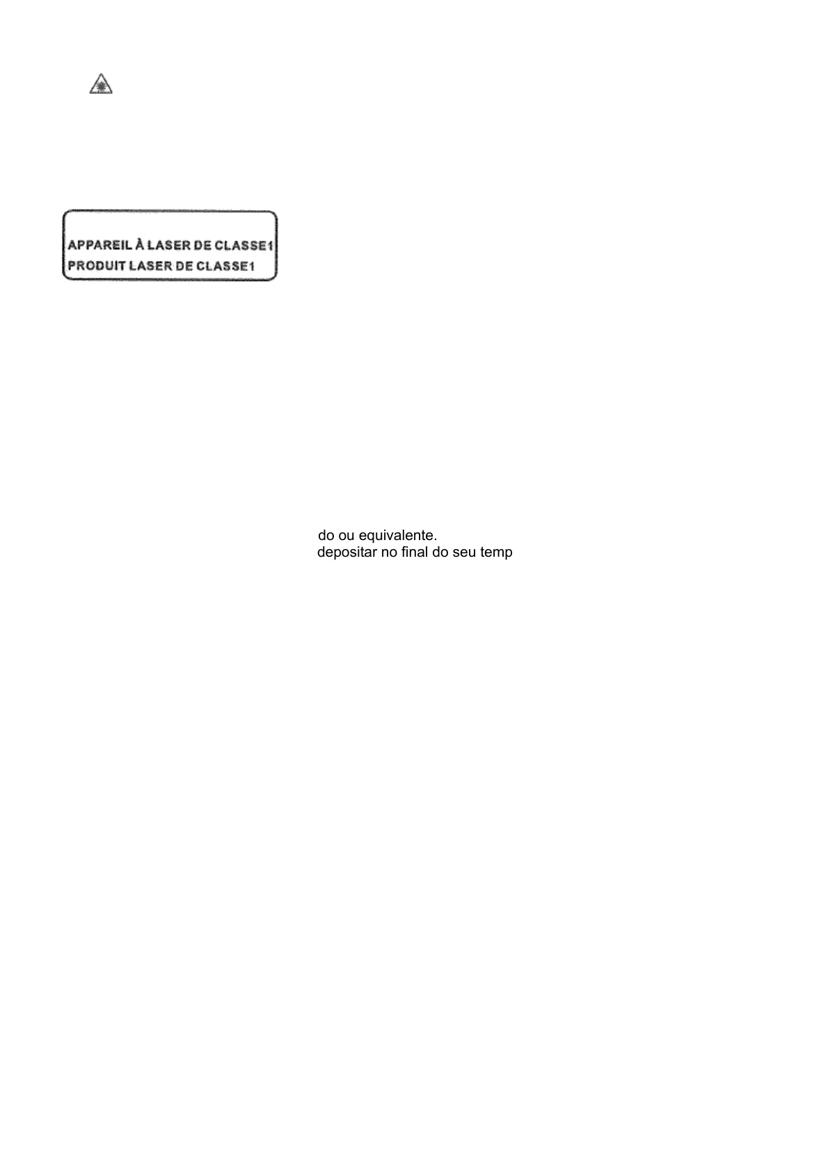 Este aparelho contém um emissor laser de baixa potência.