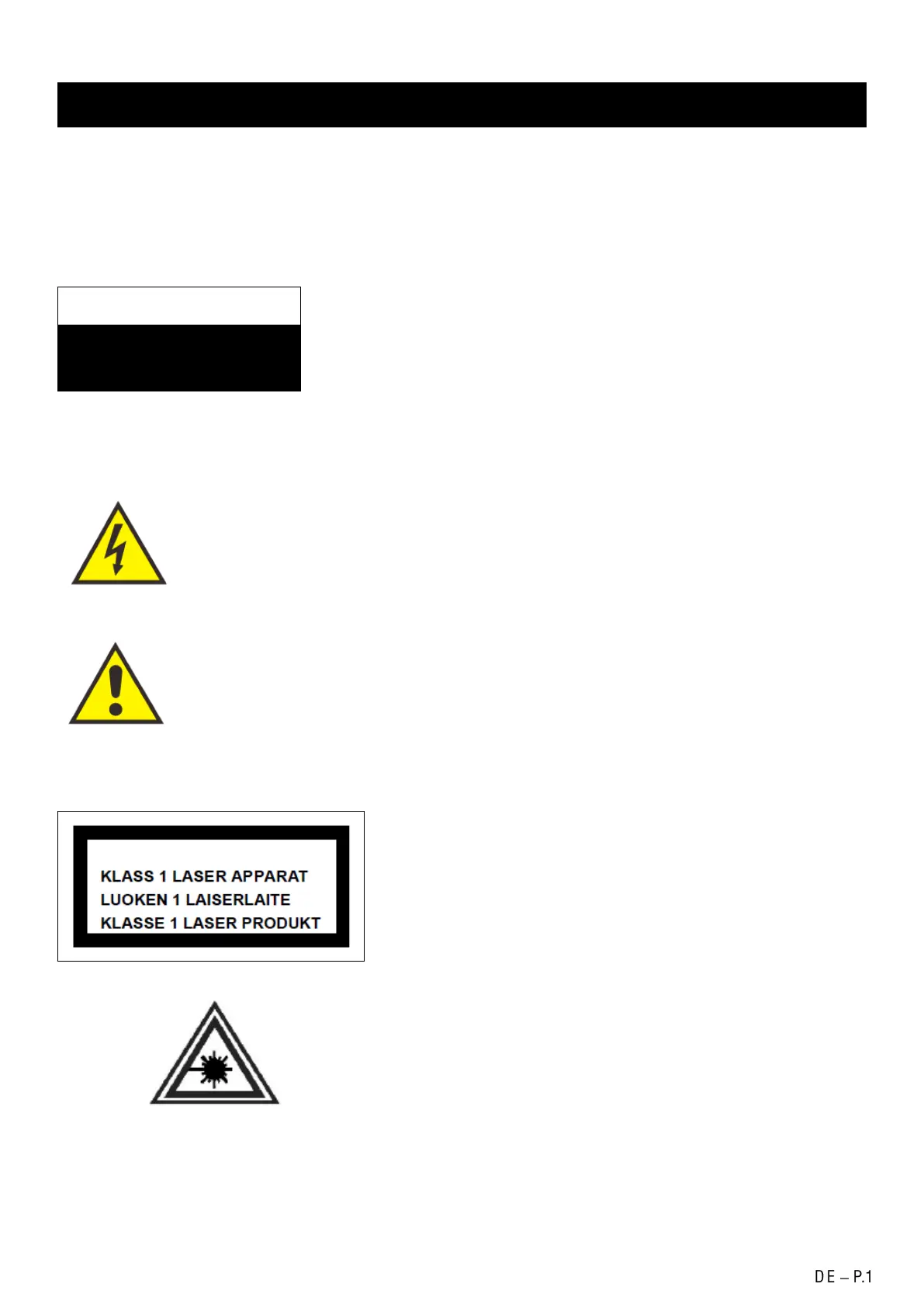 SCHILD FÜR KLASSE 1 LASER PRODUKT-