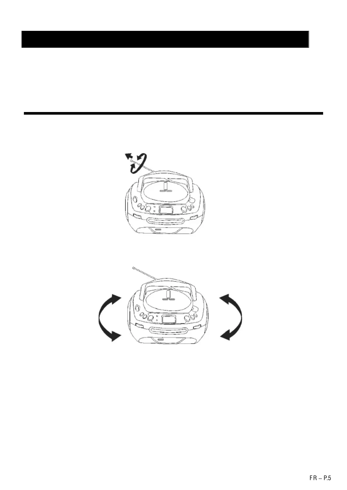- Changez l'orientation de l'antenne jusqu'à obtenir la meilleure réception FM.