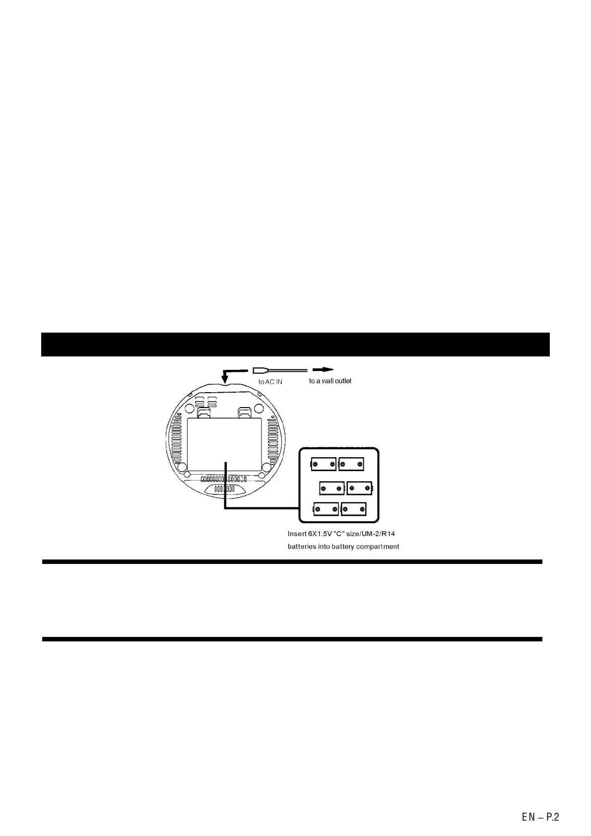Insert 6X1.5V ³C´ size/UM-2/R14 batteries into the compartment. Be sure that the batteries are inserted correctly to avoid