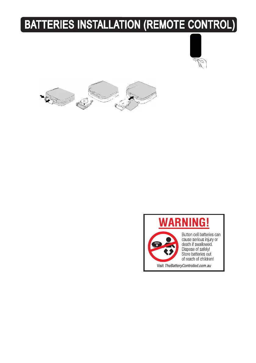 2. Be sure to follow the correct polarity when inst alling the battery as indicated in t he