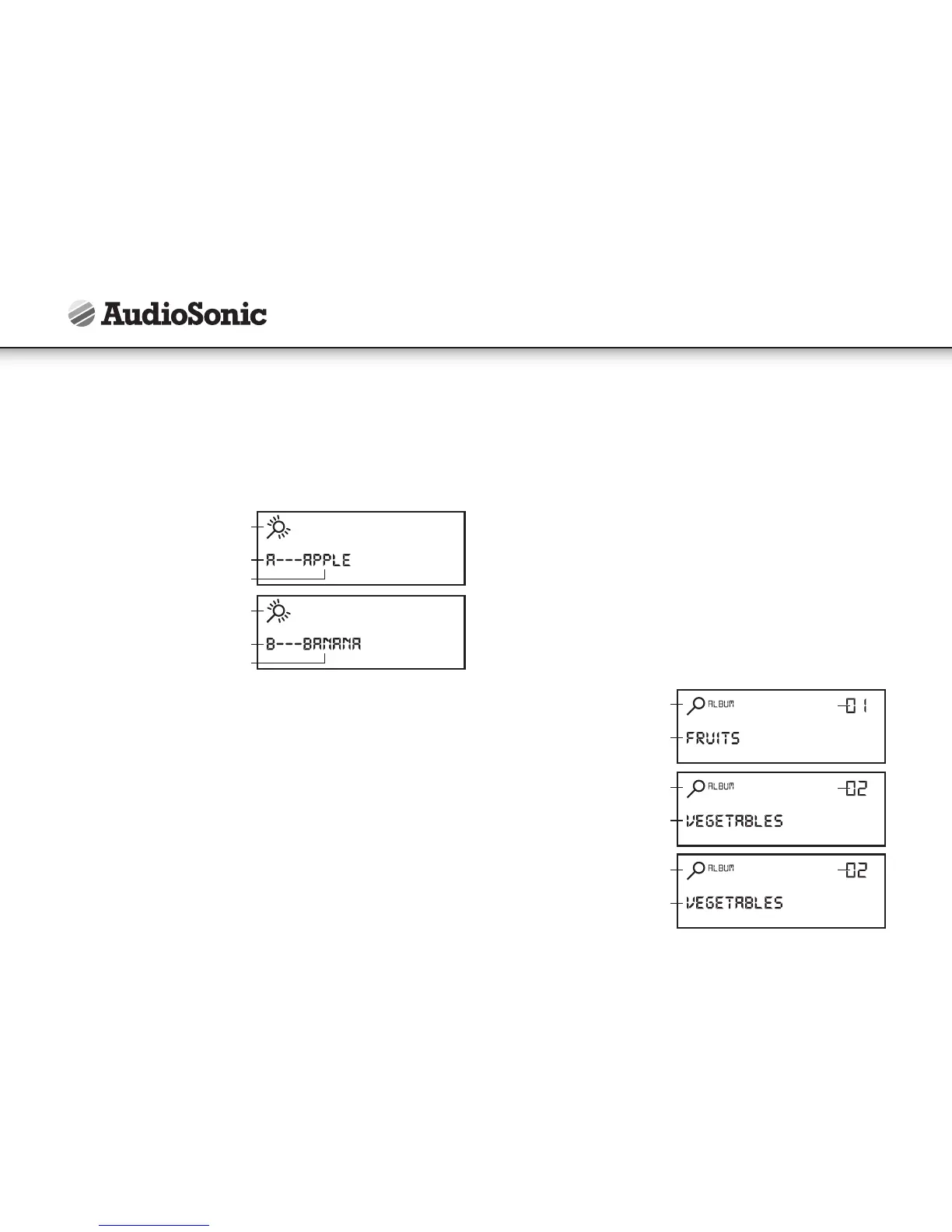 varje album (registernamnet) visas i den nedre delen av displayen för varje valt