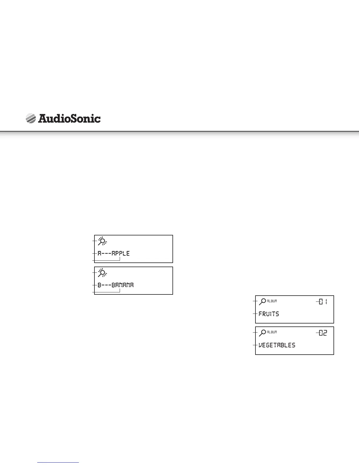 • Les symboles “find” & “album” s’allument sur l’ecran ainsi que le chiffre “1”. Il s’agit