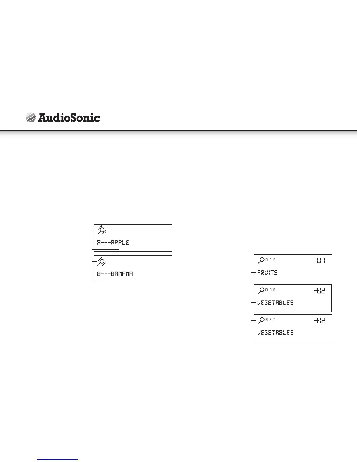 • Los simbolos “encontrar” y “álbum” se activará en la pantalla, junto con el número