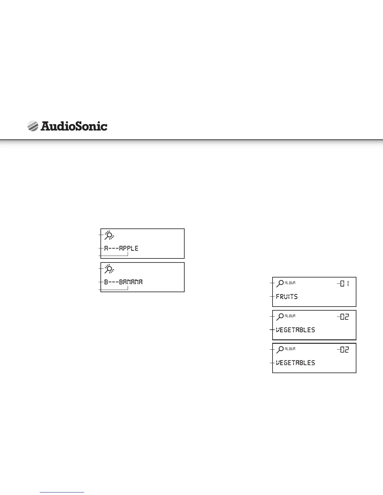 • Prima seguinte ou anterior para avançar o número do álbum. O nome de