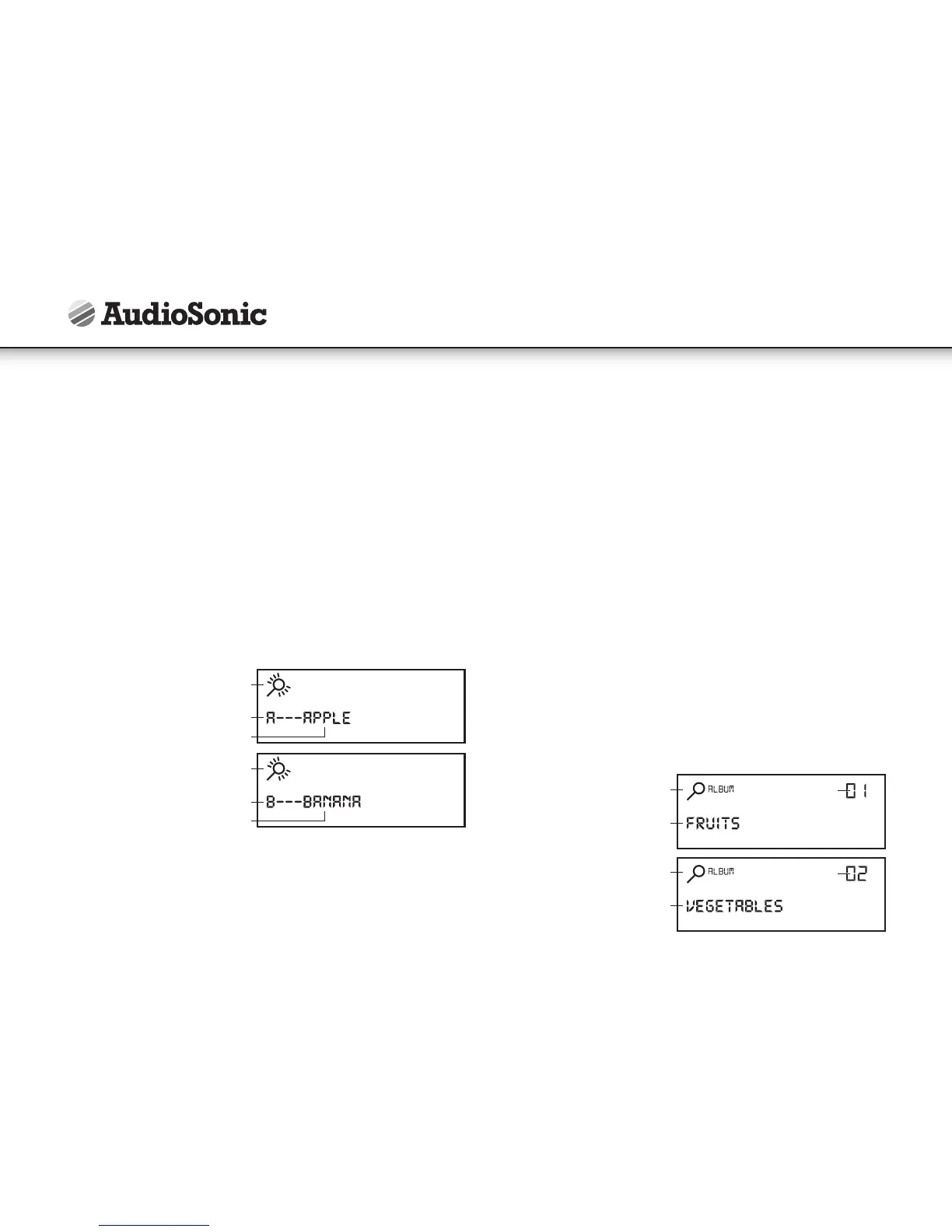 • Wcisnąć przycisk next lub back , aby zmienić numeralbumu. Nazwa każdego