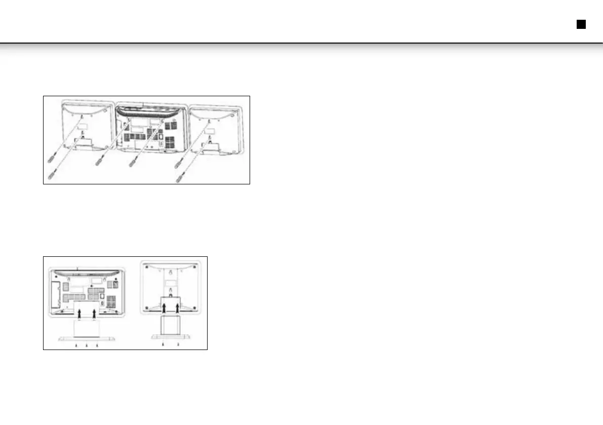 Standfüße auf und schrauben Sie die Befestigungsschrauben ein.